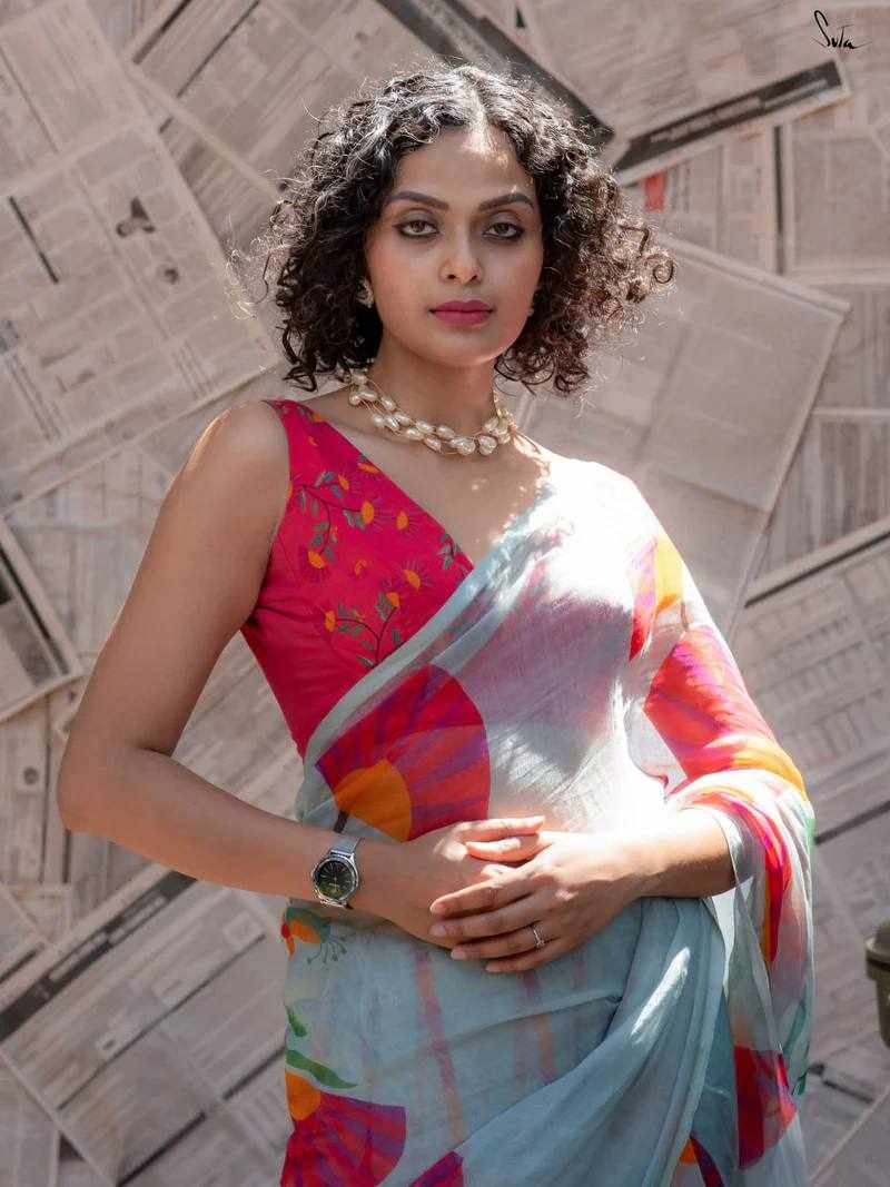 Blouse Fabric: Linen Cotton with matching digital print
