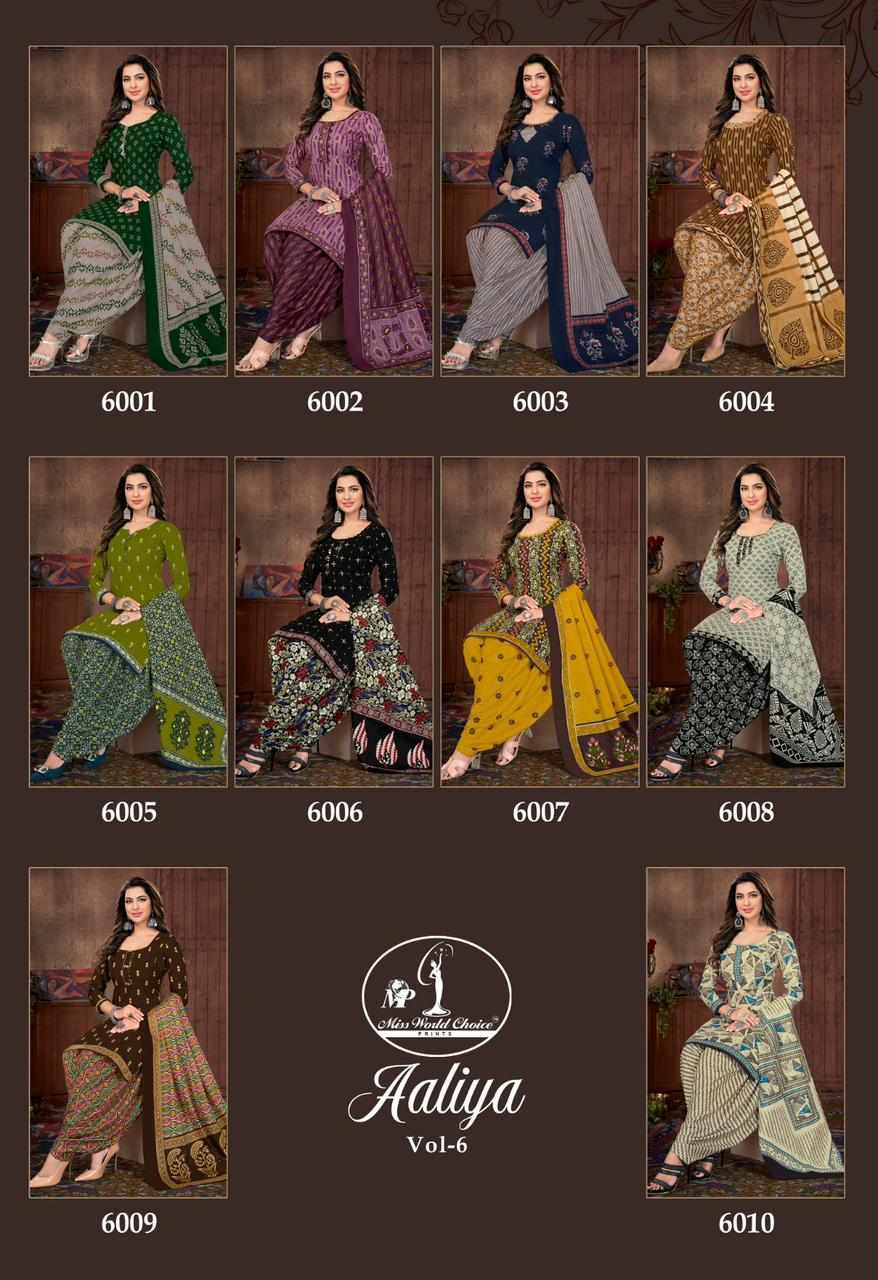 Missworld Choice Aaliya Vol 06 Cotton Dress Material In Wholoesale