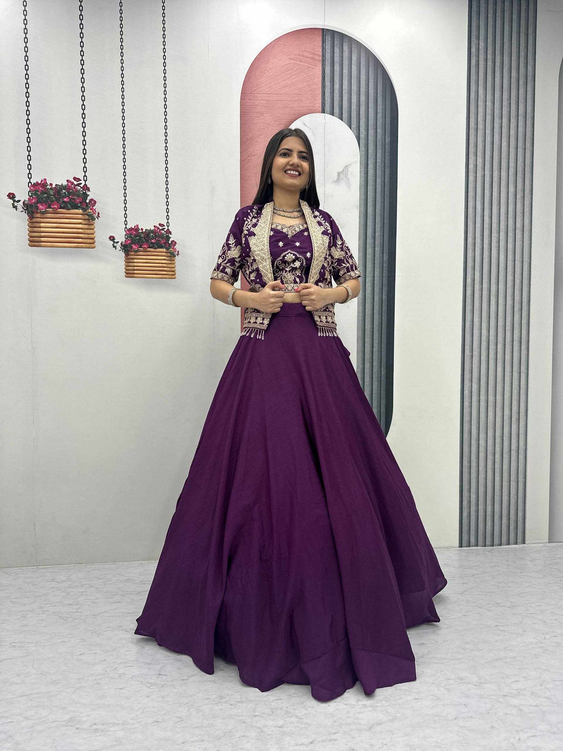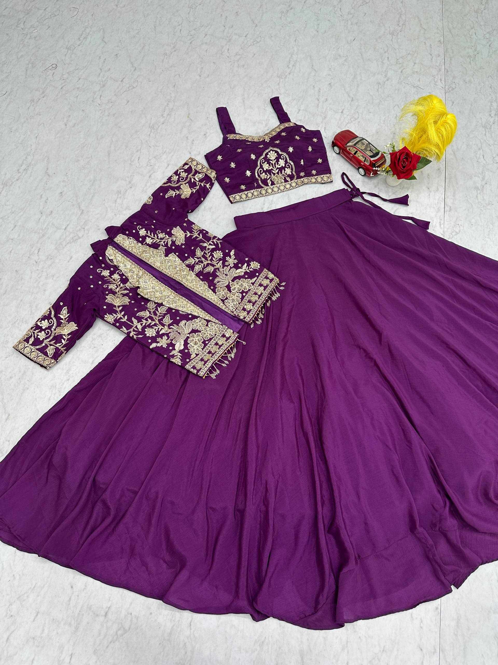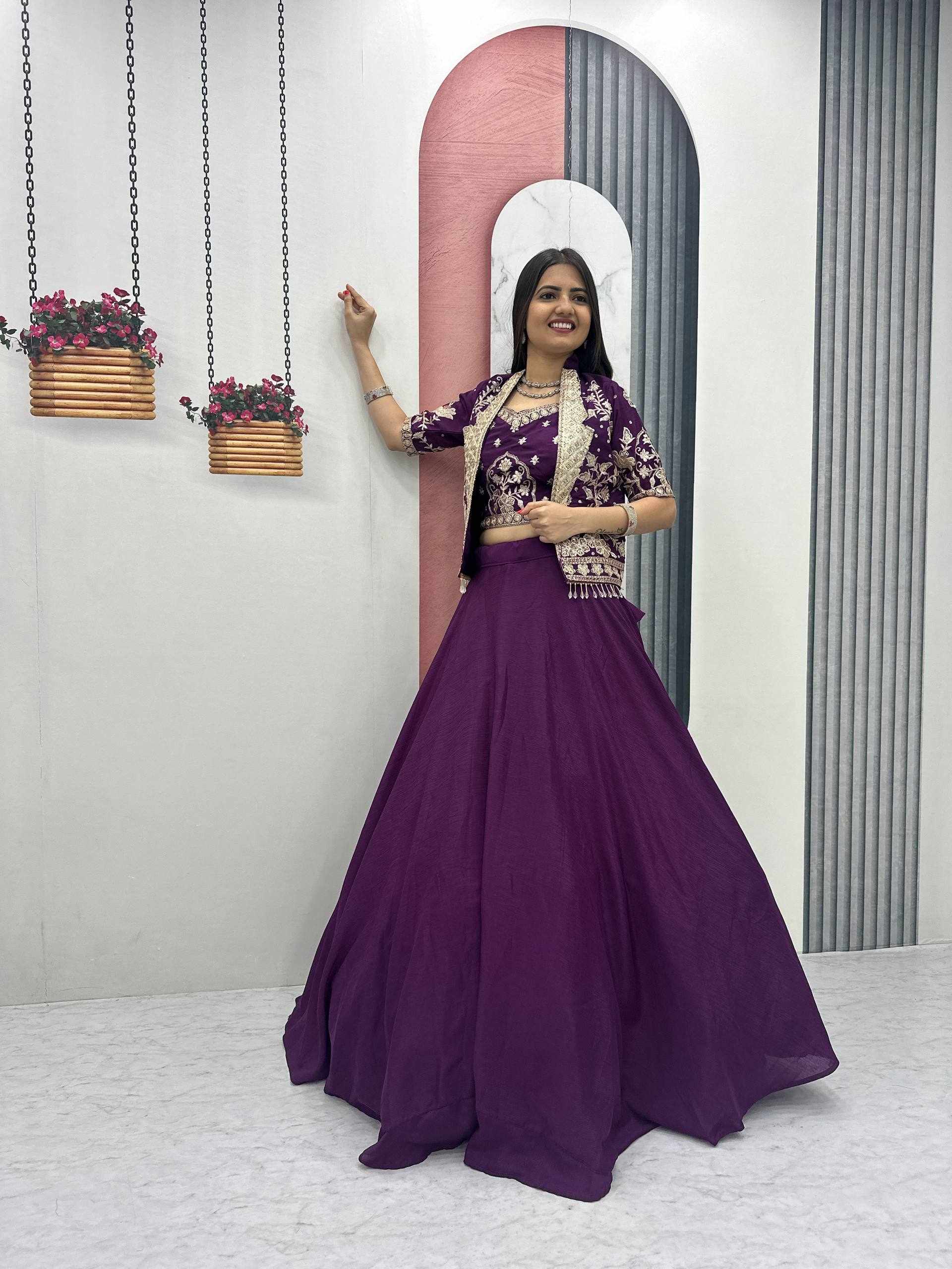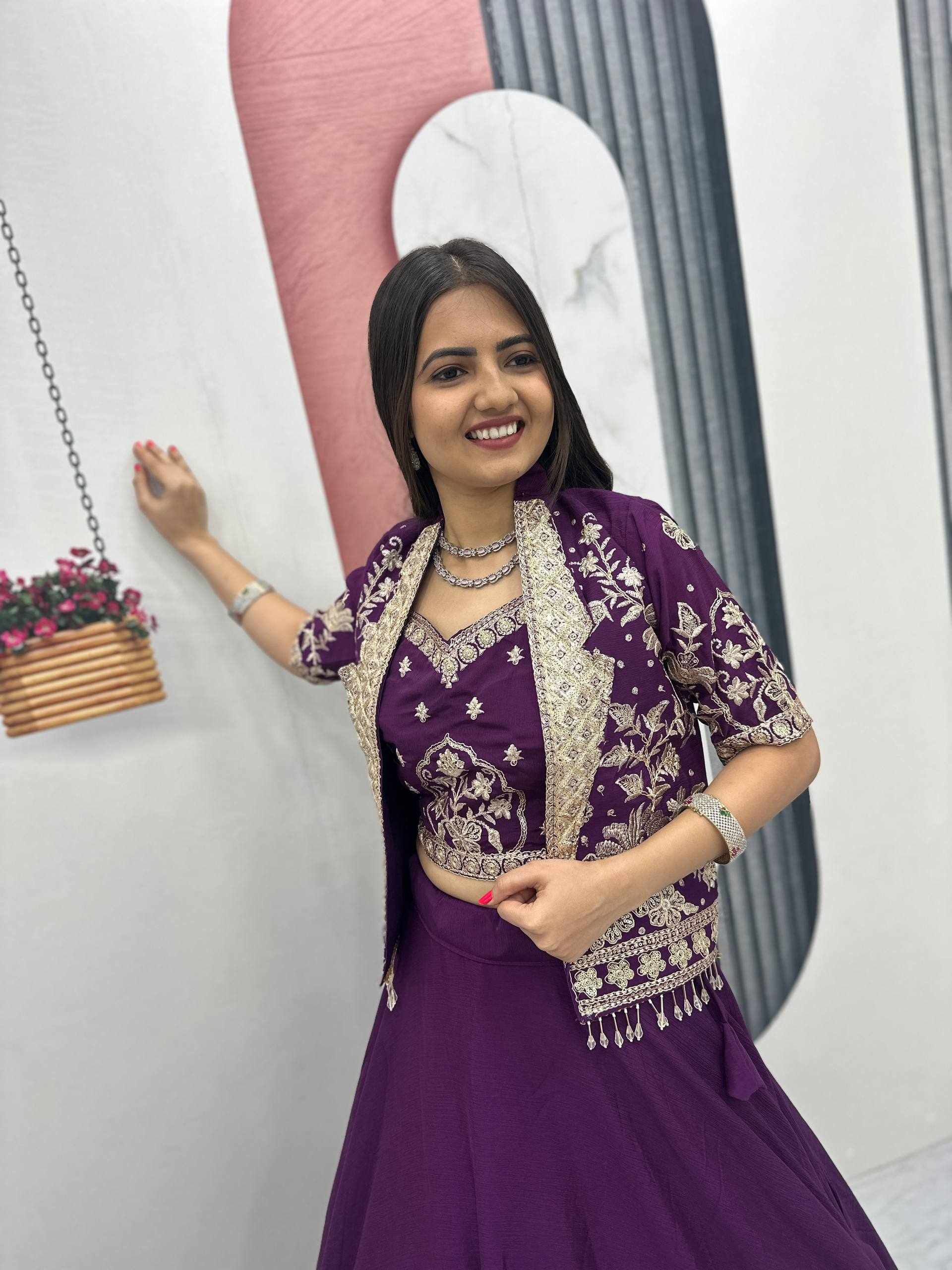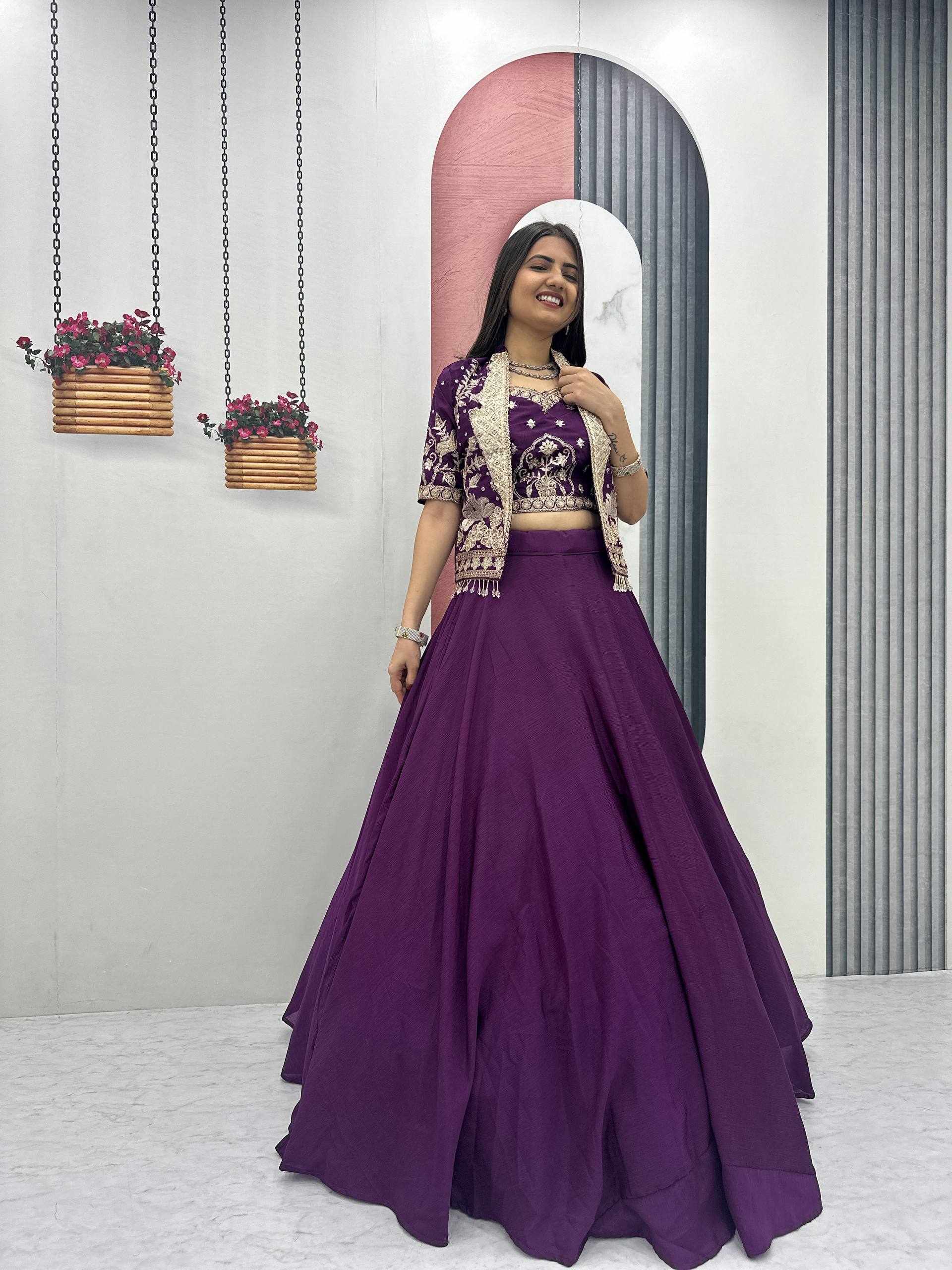 PC 566 Beautiful Lahenga With Embroidered Jacket Purple Colour