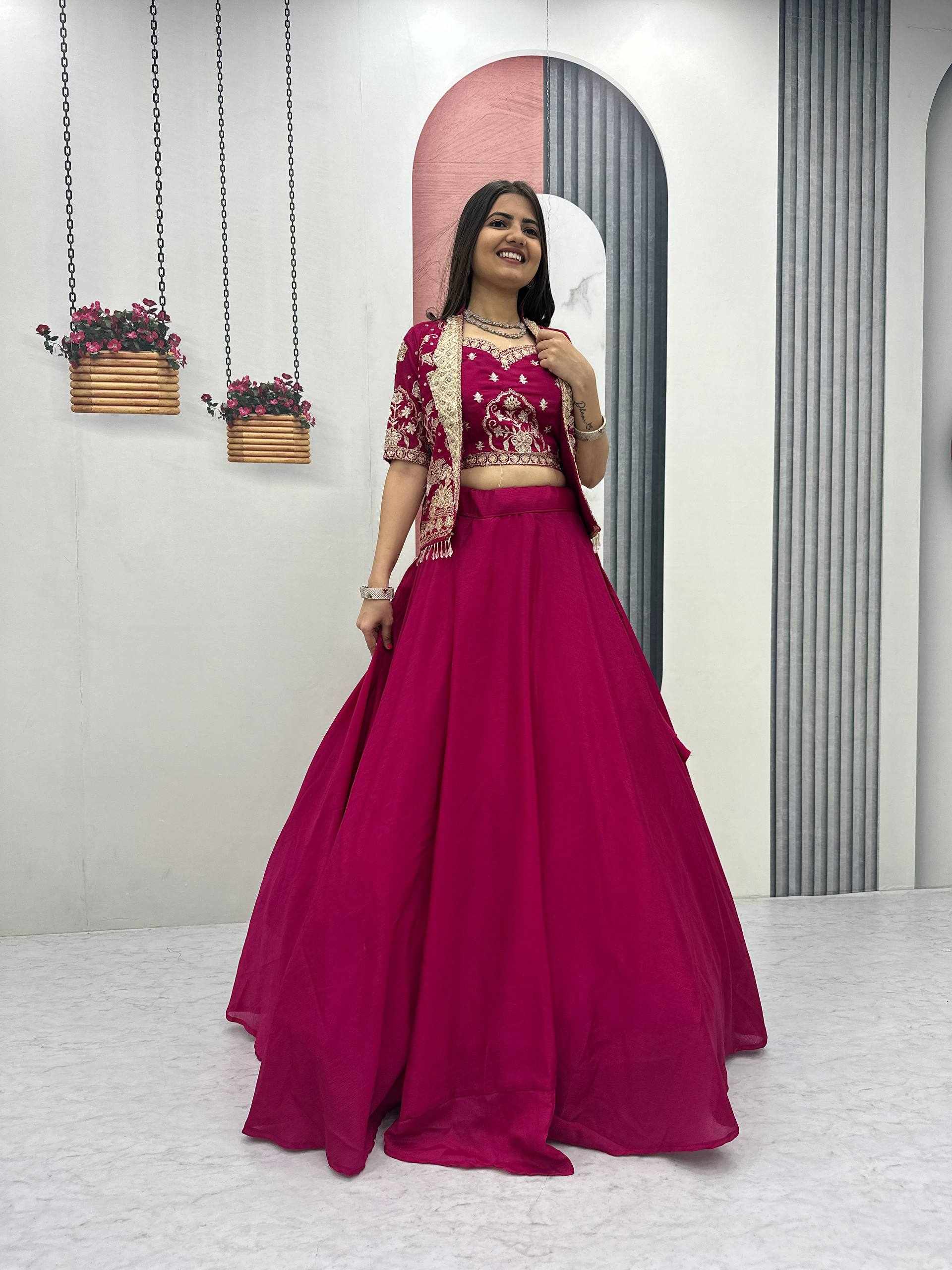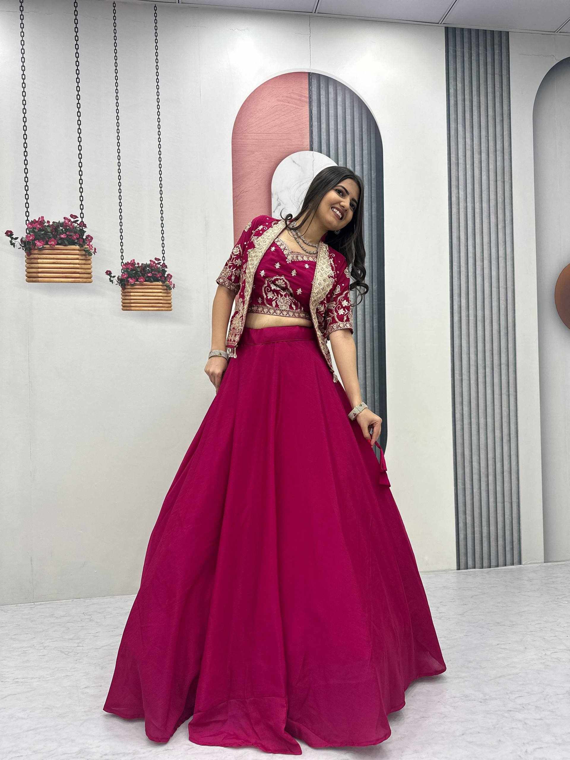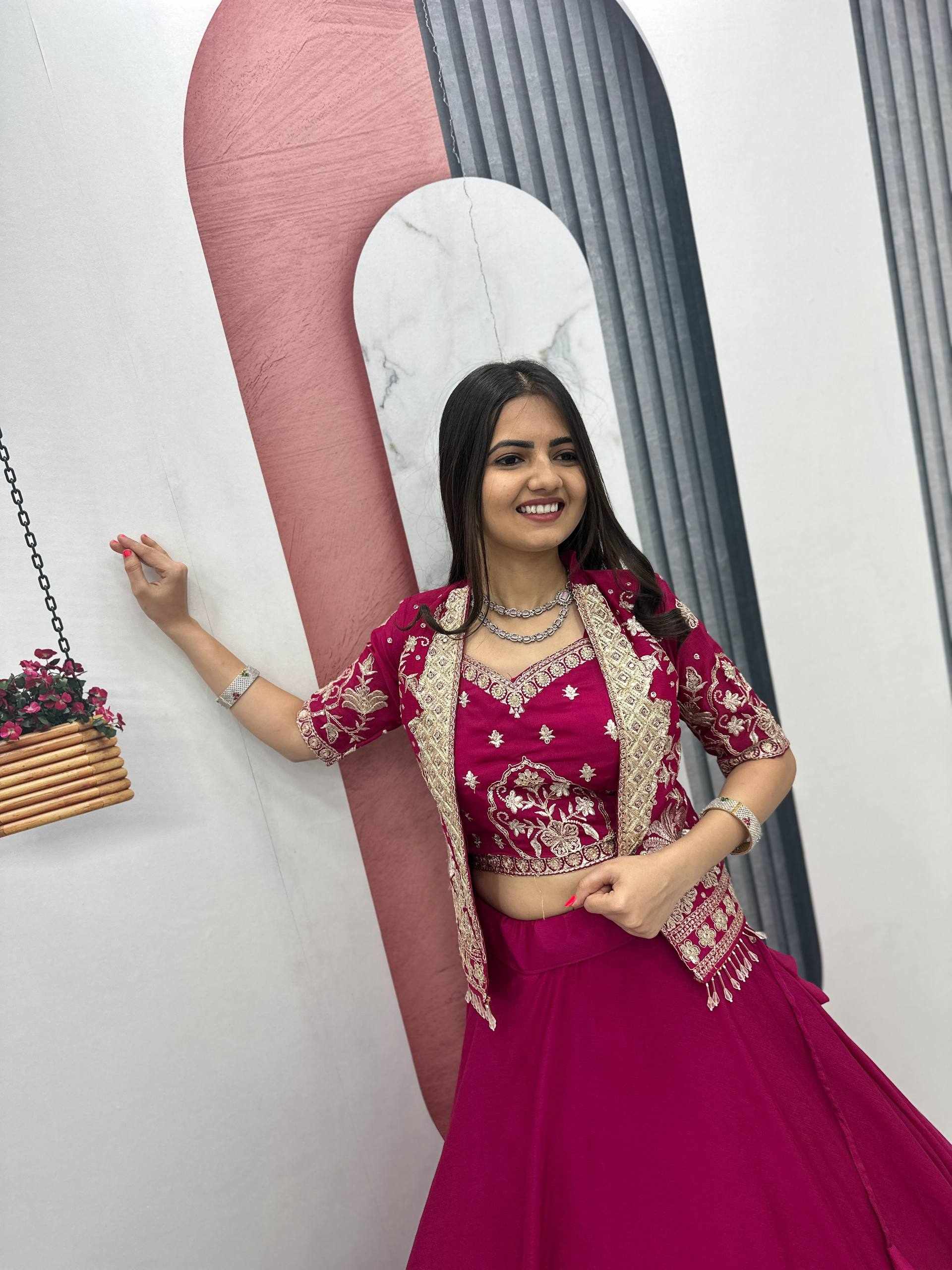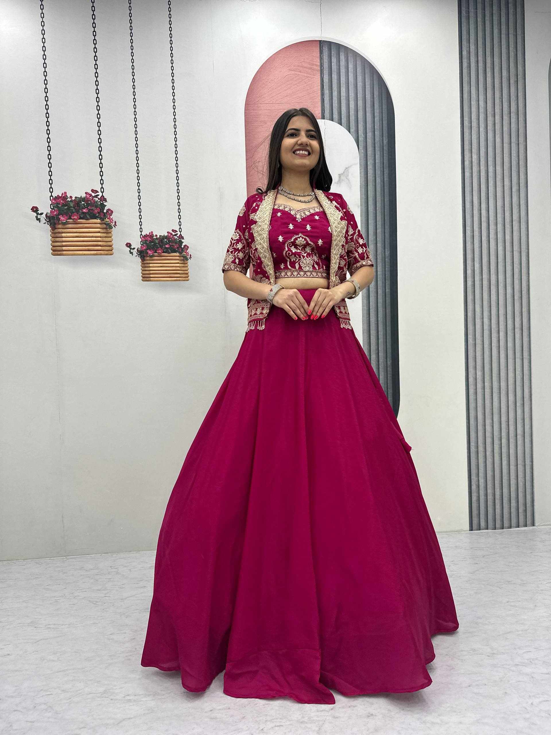Elegant Chinon Lehenga Set with Jacket