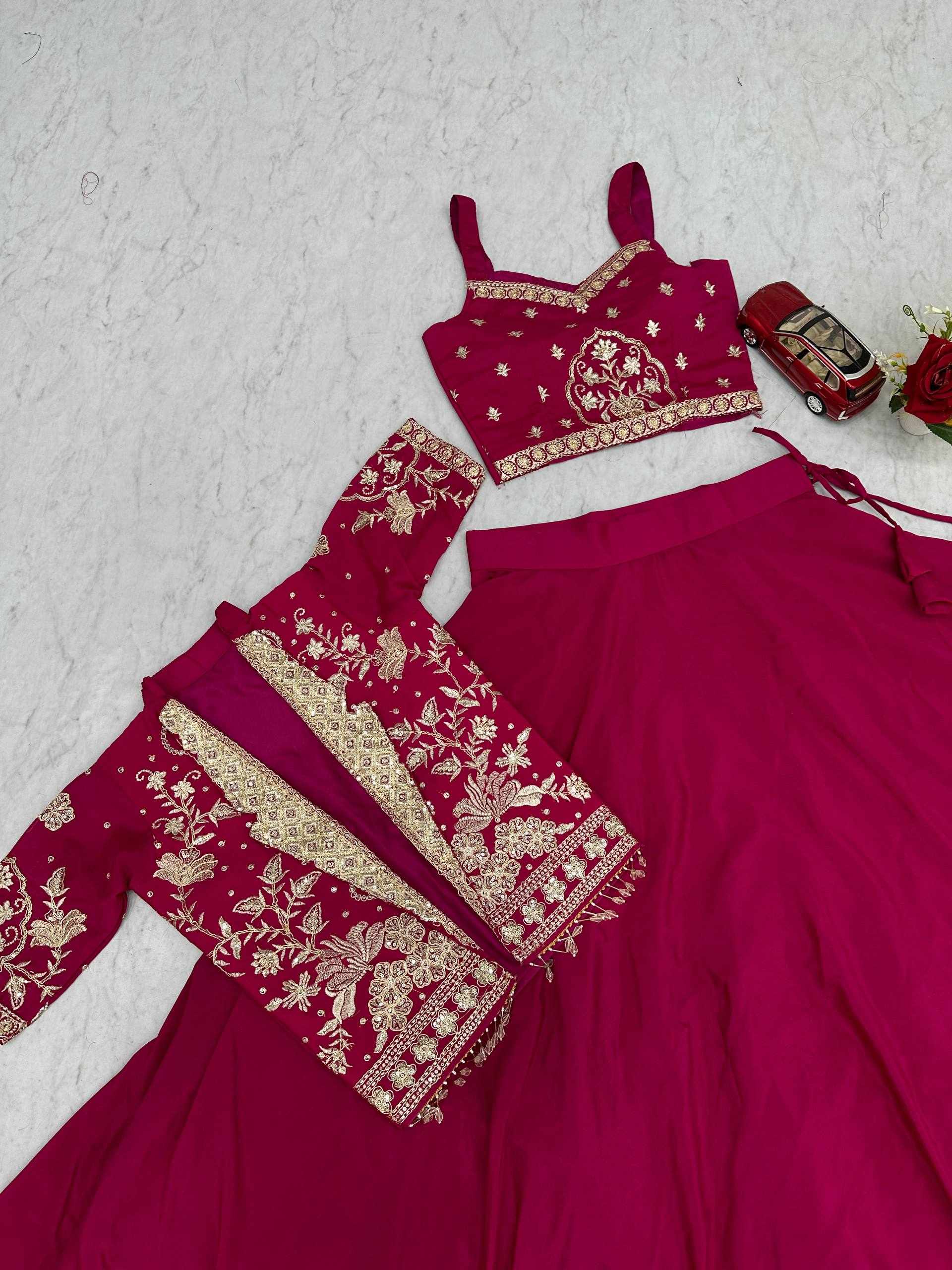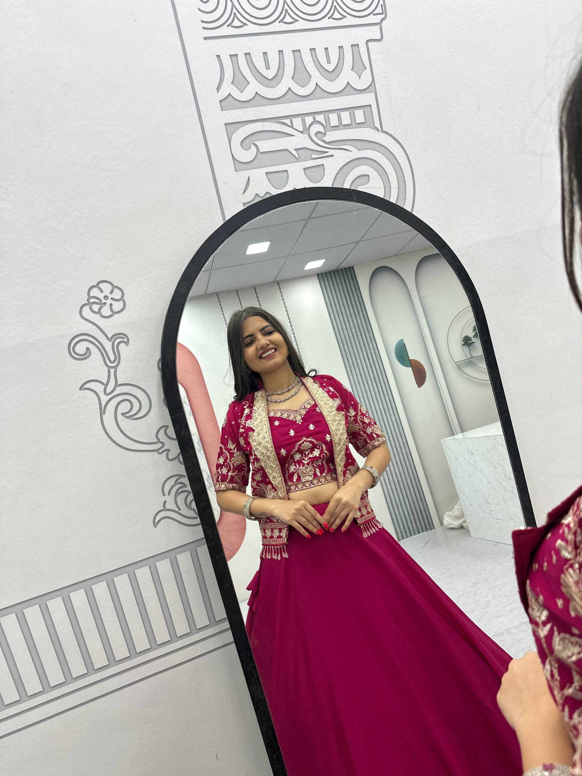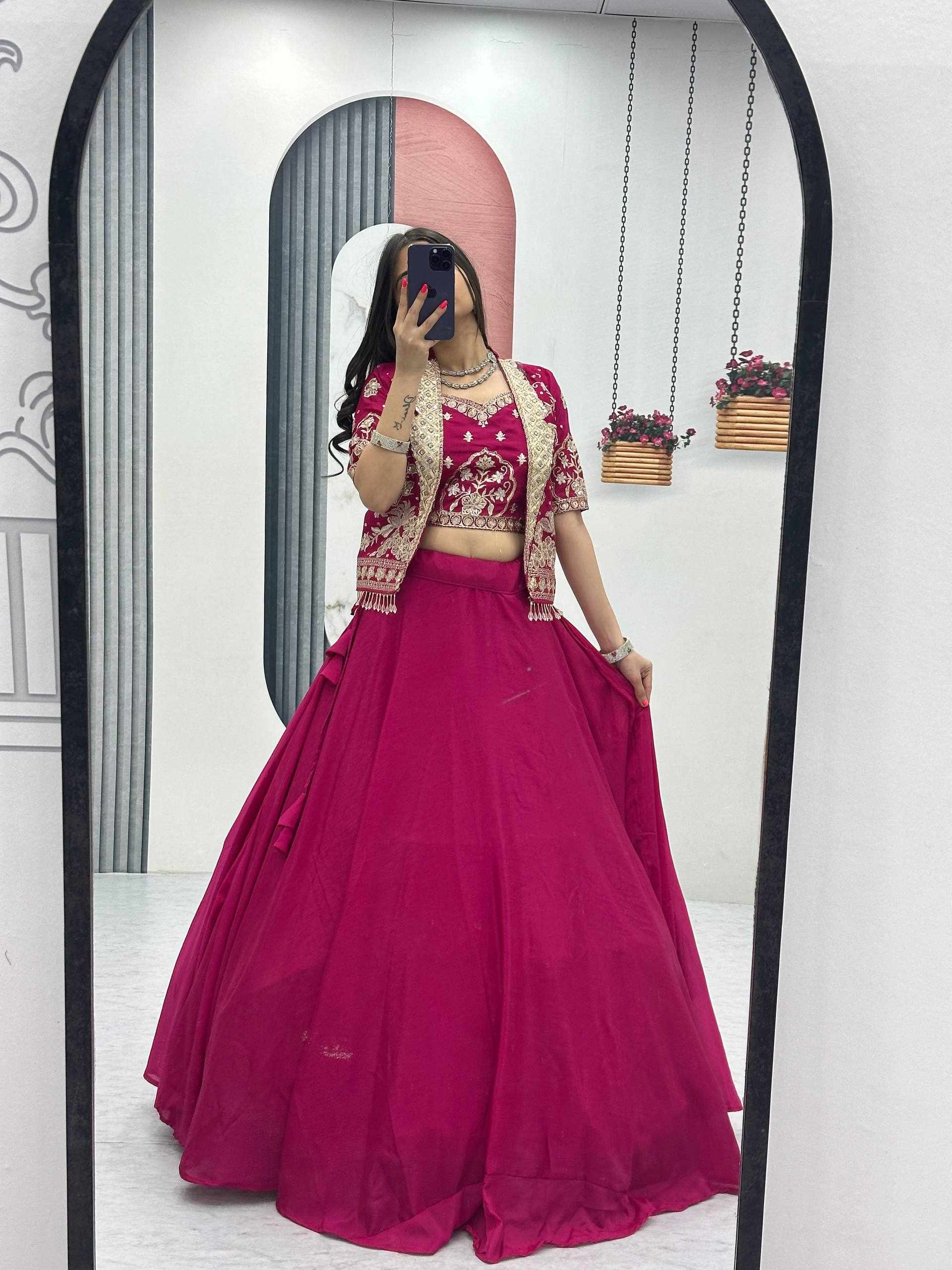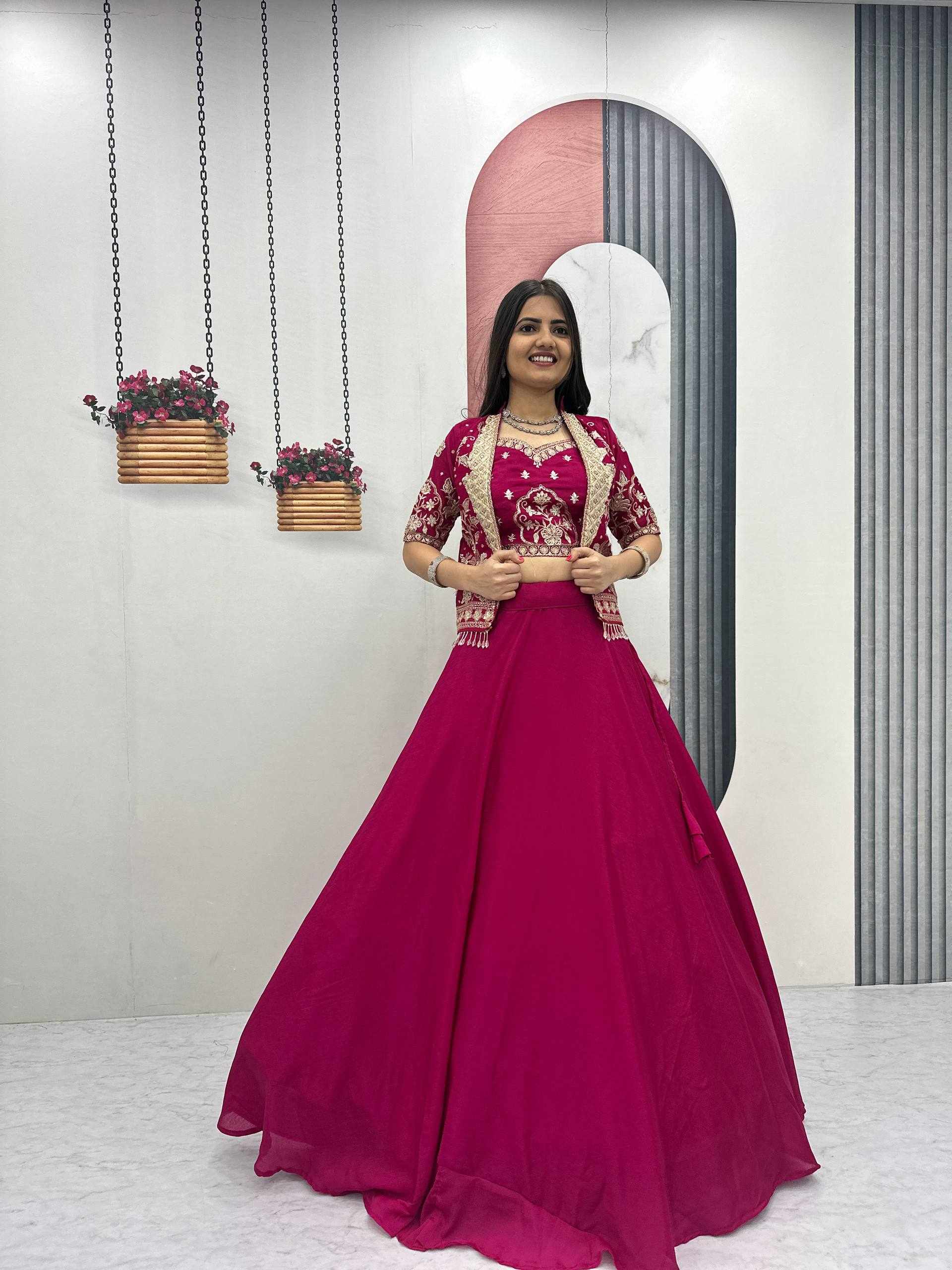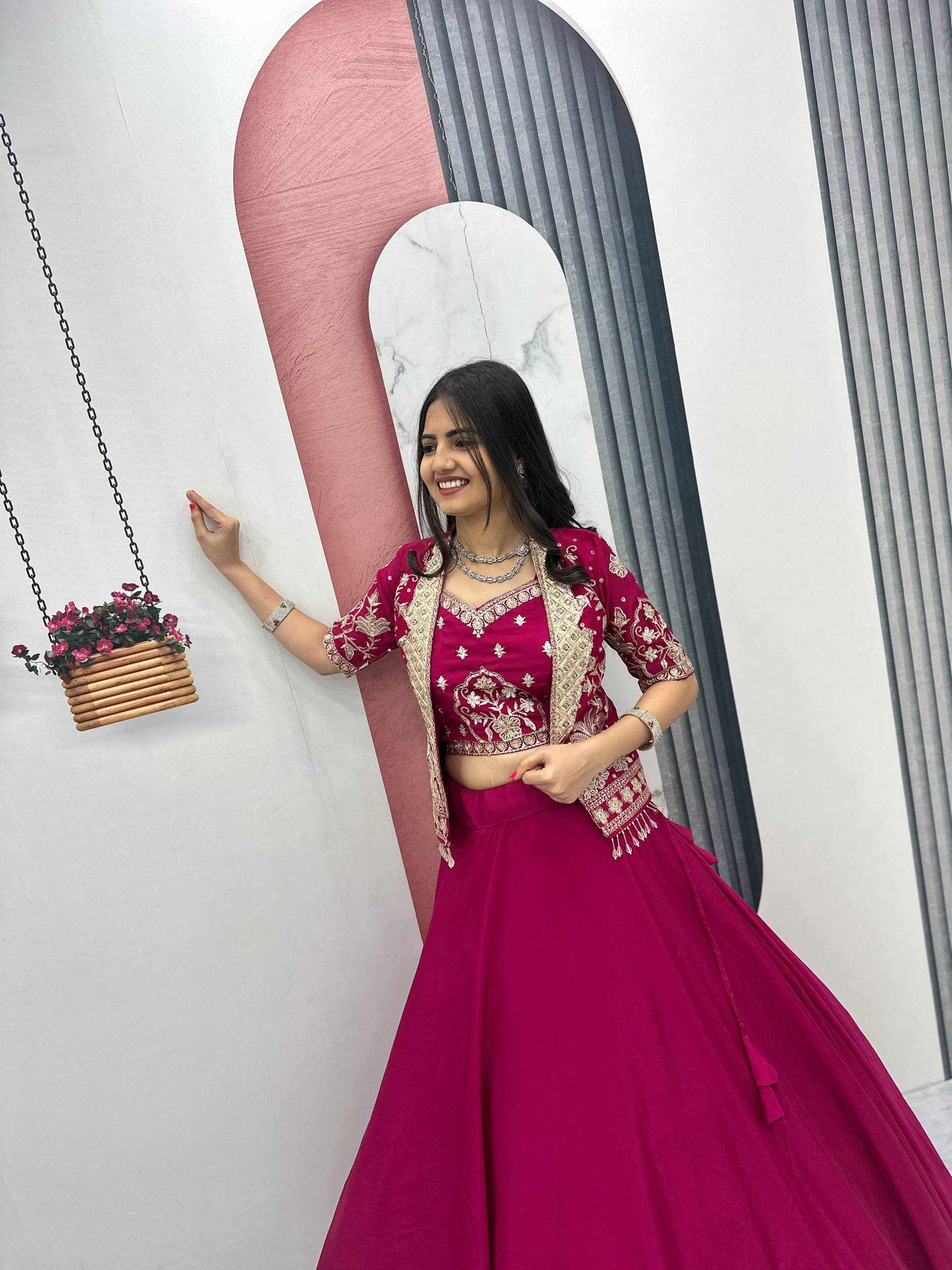 Elegant Chinon Lehenga Set with Jacket