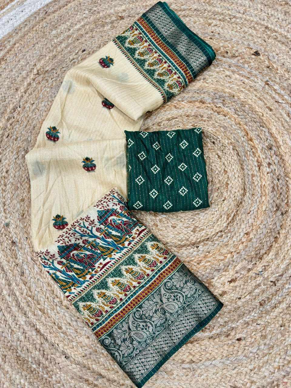 | Name : | PIYU 1045 RECCO KALASH Green Saree |