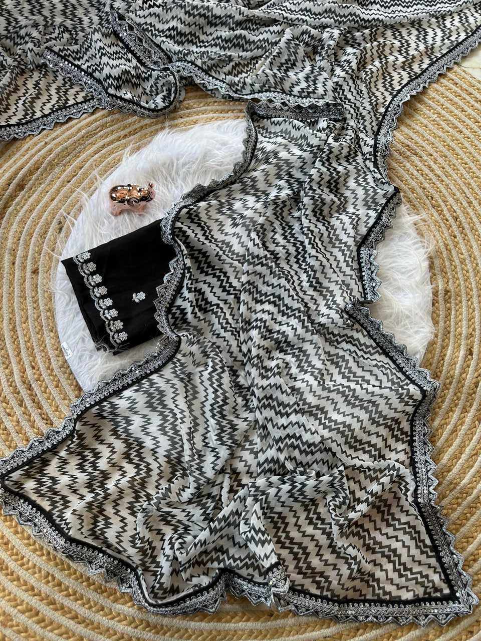 Crafted with graceful georgette and detailed coding embroidery lace work, this saree gives a rich and classy look. Perfect for festive occasions, parties, weddings, and special celebrations.