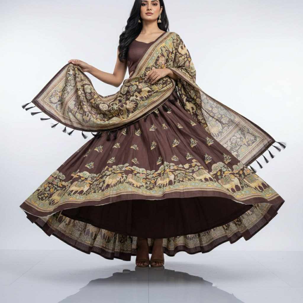 | Name : | PIYU 23-2 Silk Digital Print Brown Lehnga |