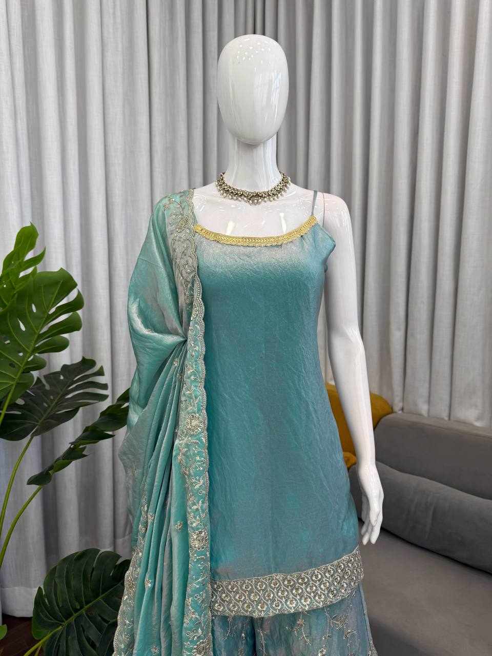 Elegant Fendy Silk Plazo Set with Dupatta