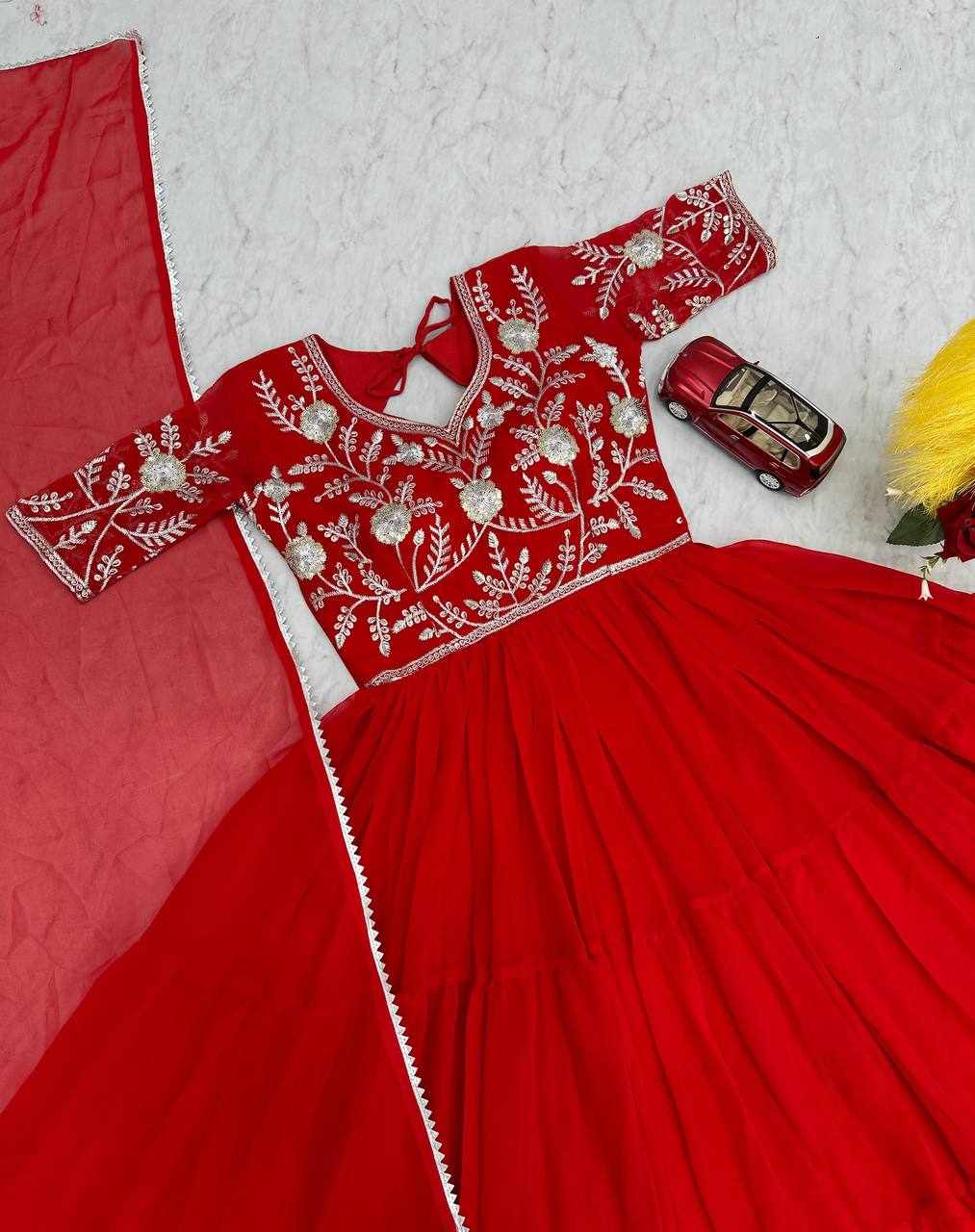 Home / PC 459 Red Fox Georgette Embroidered Gown