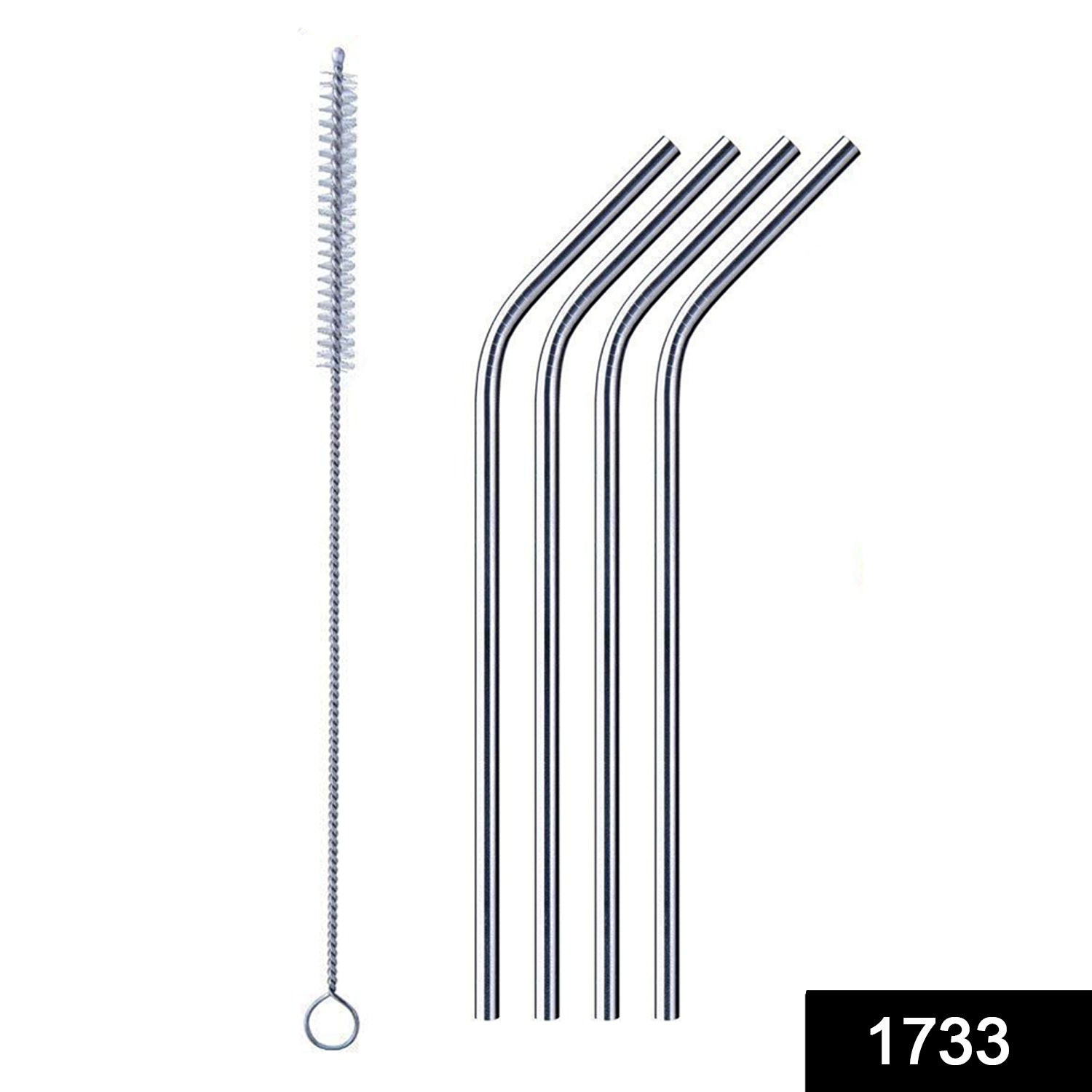 1733 Reusable Stainless Steel Drinking Straws Bent (4 Bent Straws, 1 Brush)