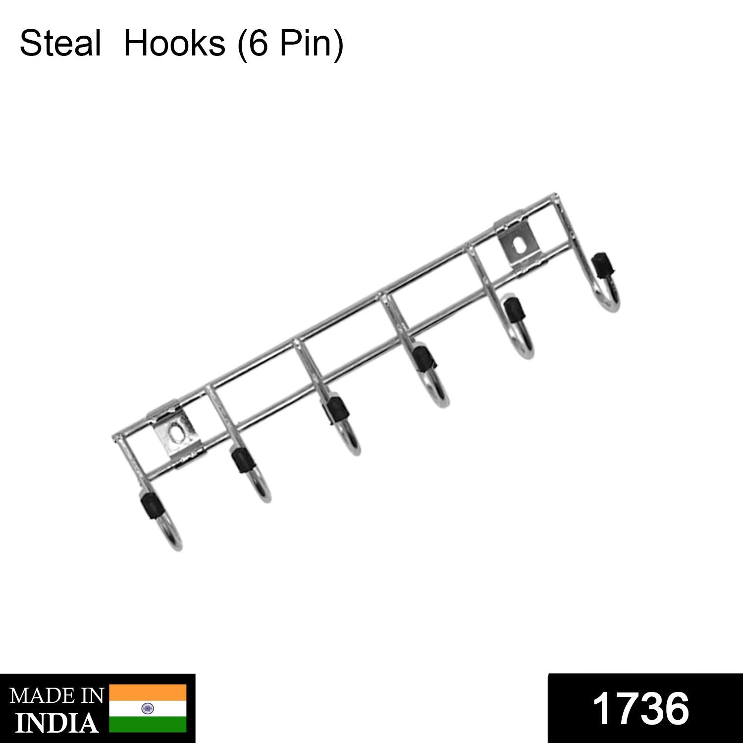 1736 Multipurpose Stainless Steal Hanger Strip Hooks (6 Pin) has been successfully added to your cart .