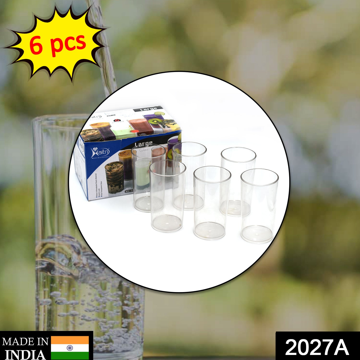 2027A 6 Pcs Large Plastic Glass 300Ml used in all kinds of kitchen and official purposes for drinking water and beverages etc.