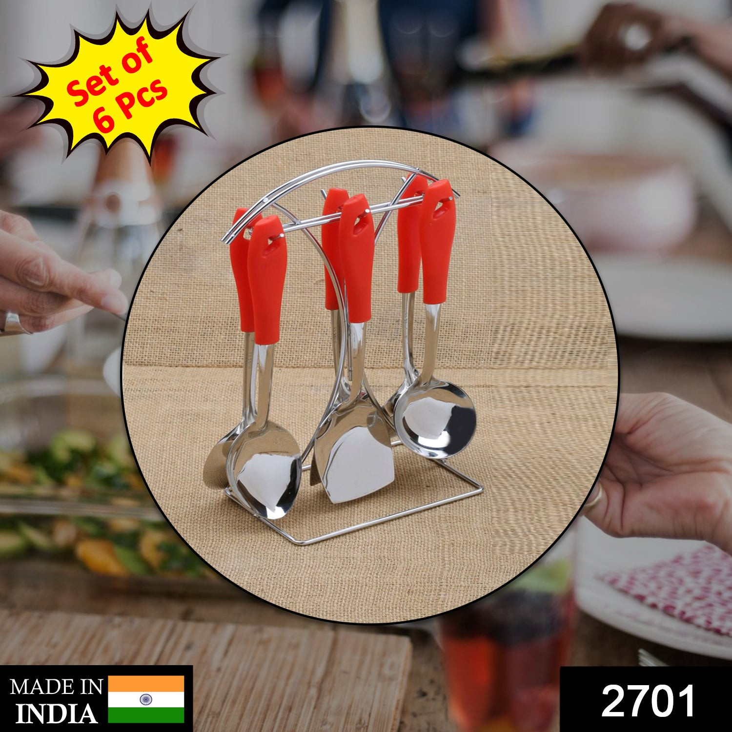 2701 6 Pc SS Serving Spoon With stand used in all kinds of household and kitchen places for holding spoons etc.