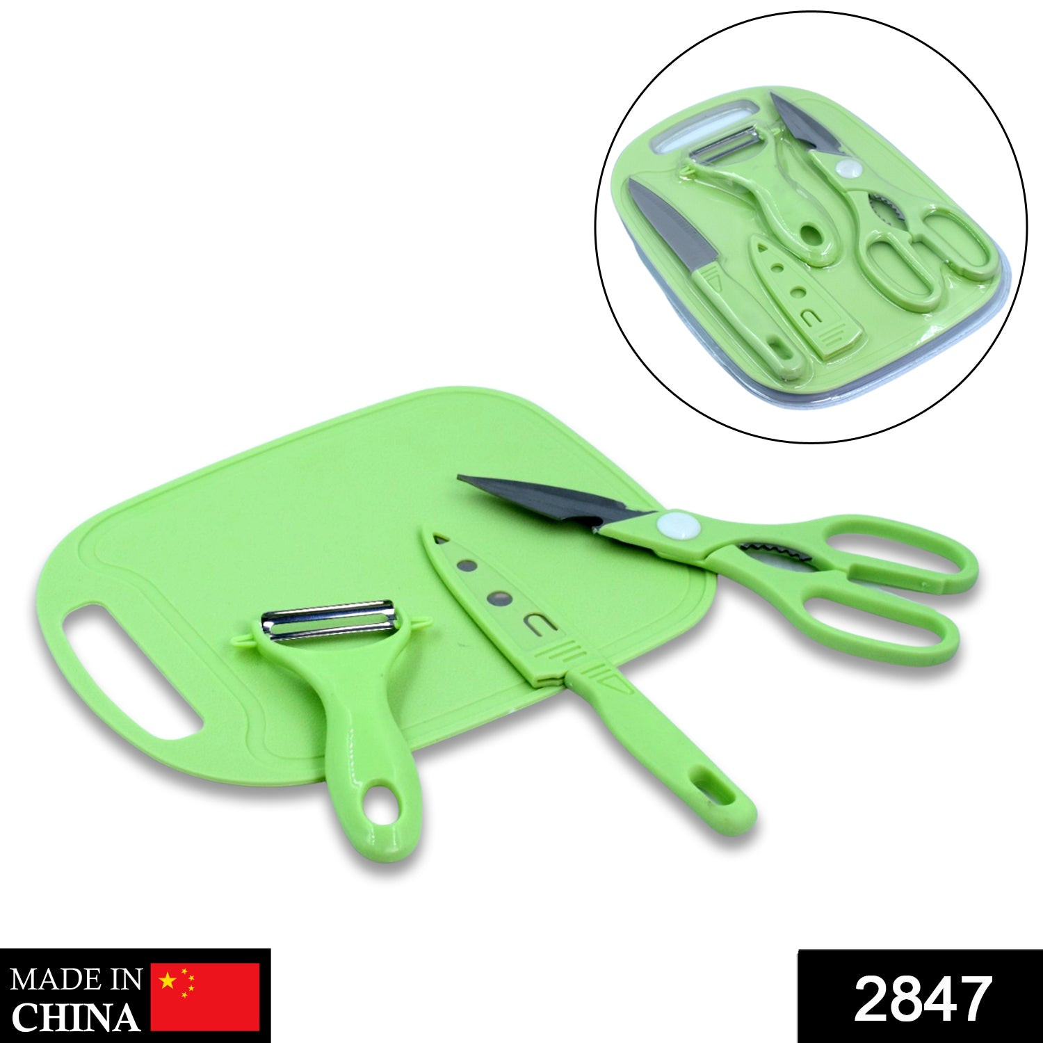 2847 2 Pieces Knife with Chopping Board with Peeler, Grater | Vegetable Cutting Kitchen Accessories Items (5 pcs Set)
