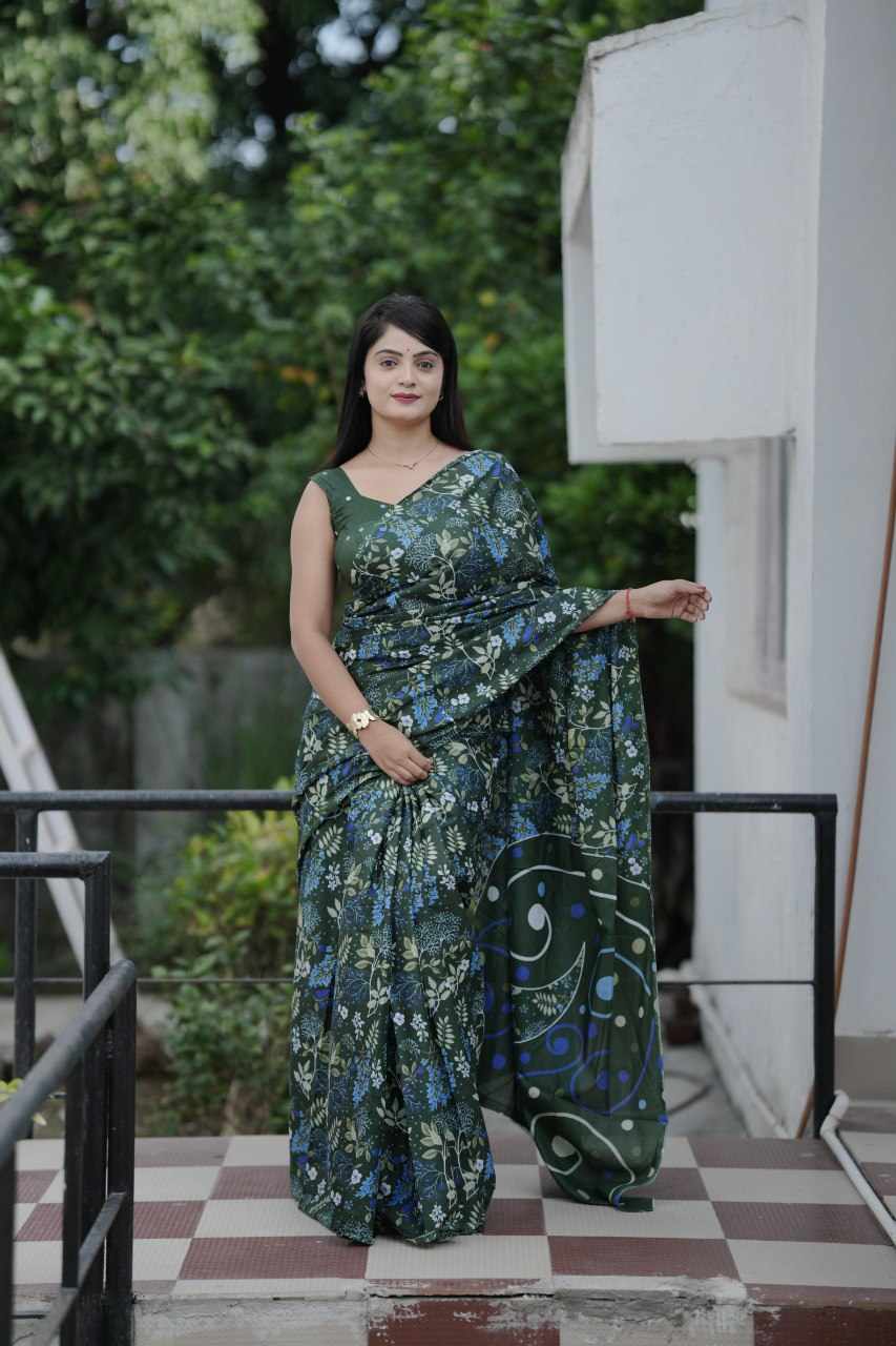 Home / 83 PADMAVATI GREEN MULMUL COTTON SAREE