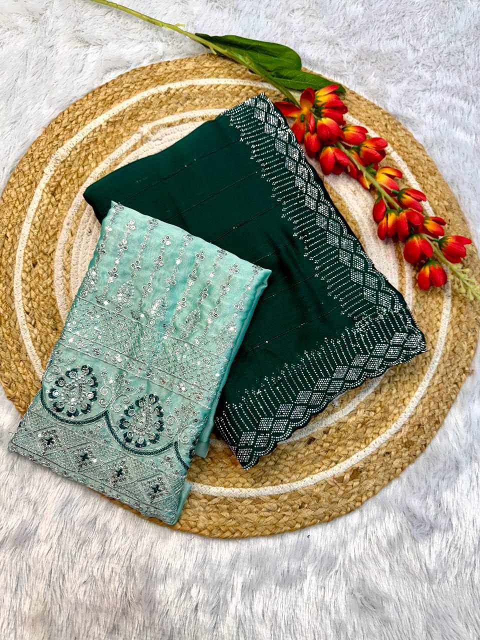RC chiffon sequins green beautiful saree