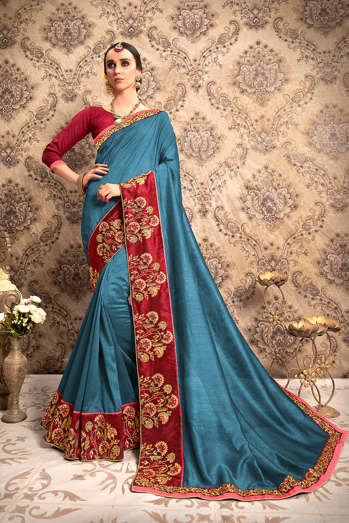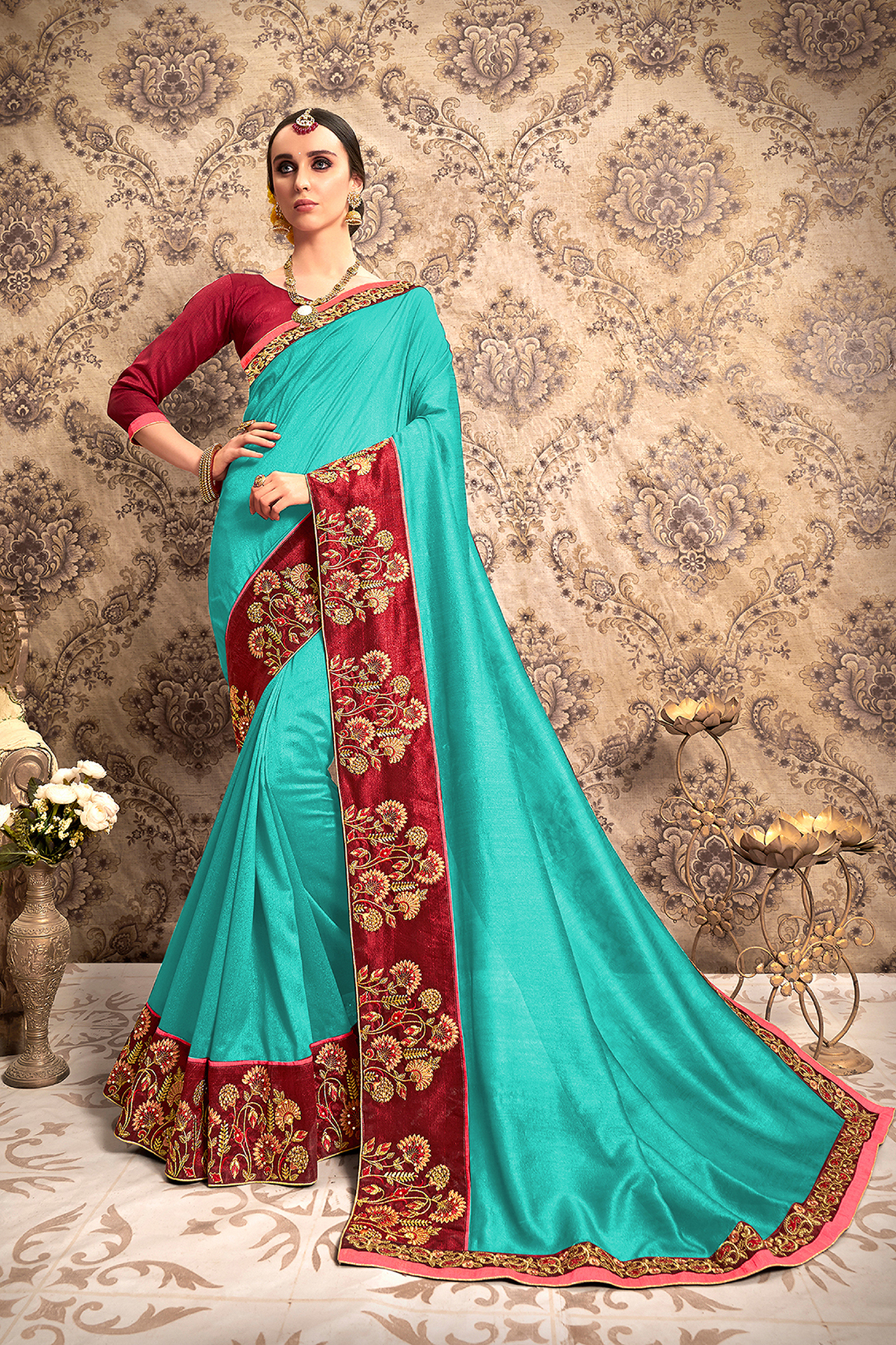 Embroidery Silk Saree with Unstiched Blouse Peice