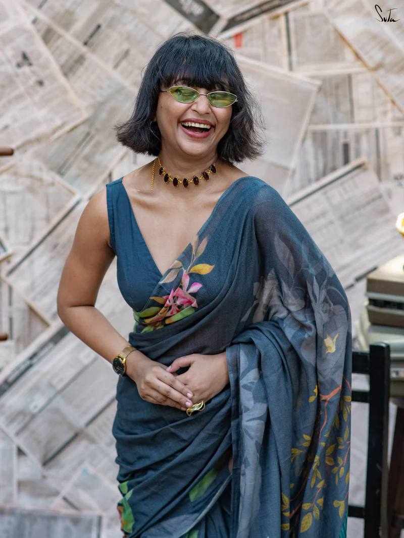 Fabric: Linen Cotton with beautiful digital print and handmade cotton tassels (5.5 m cut)