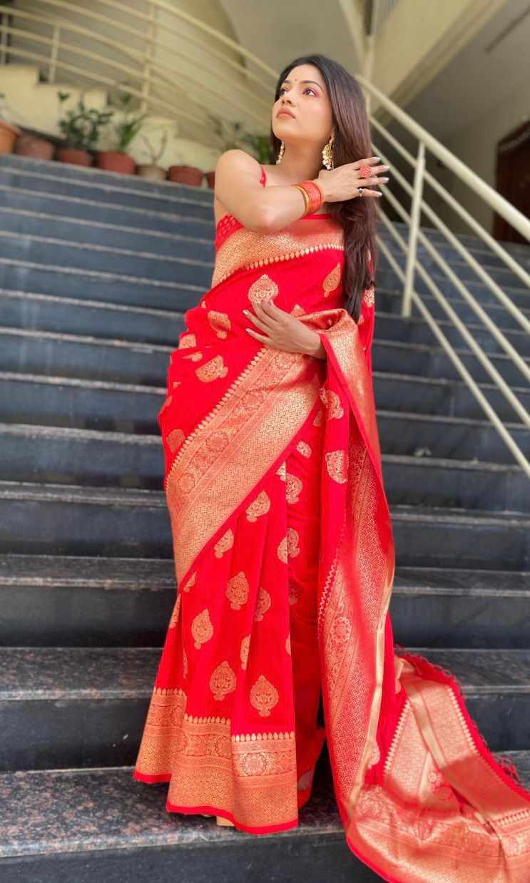 Name : | MF 1610 RED SOFT LICHI SILK SAREE |