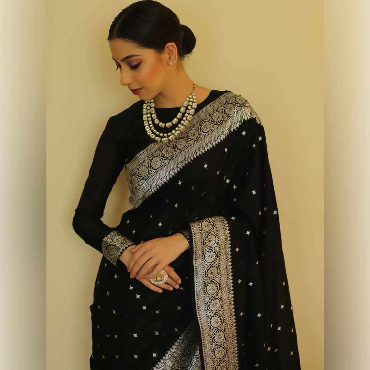 Reviews for MF 1680 BLACK BANARASI SOFT LICHI SILK SAREE