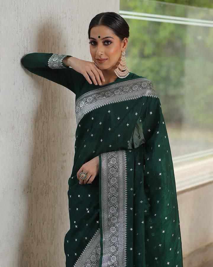 Name : | MF 1680 GREEN BANARASI SOFT LICHI SILK SAREE |