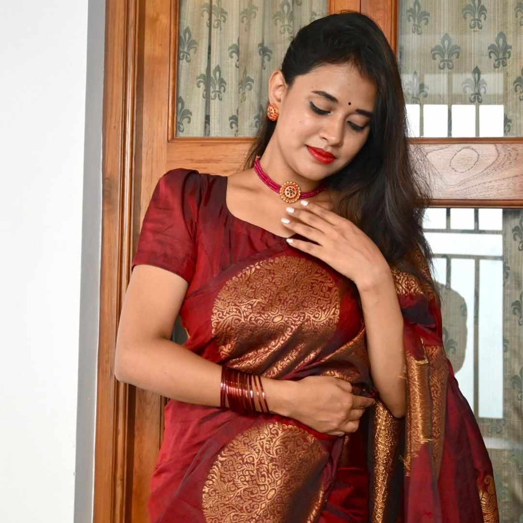 Name : | MF 1740 MARRON LICHI SILK SAREE |