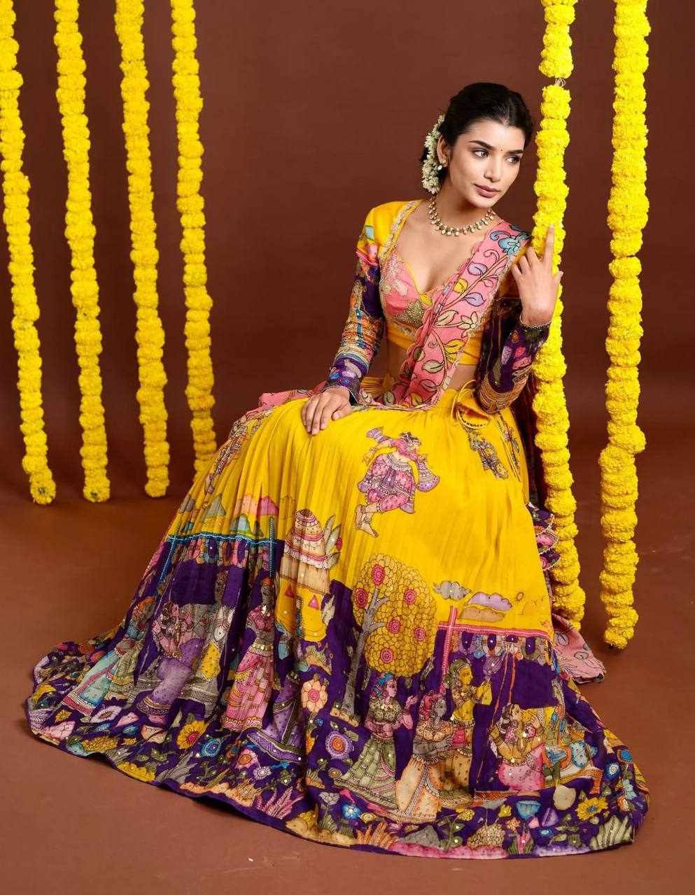 Name : | PC 462 Yellow Kalamkari Lehenga |