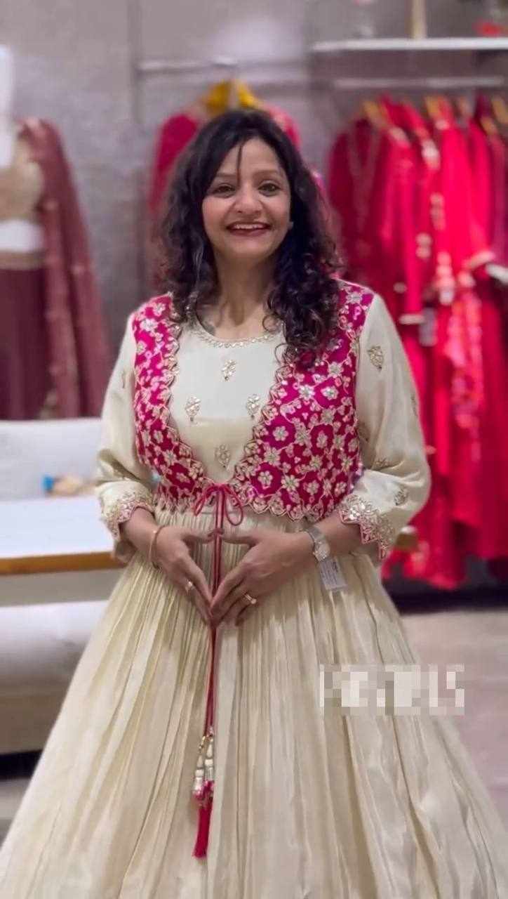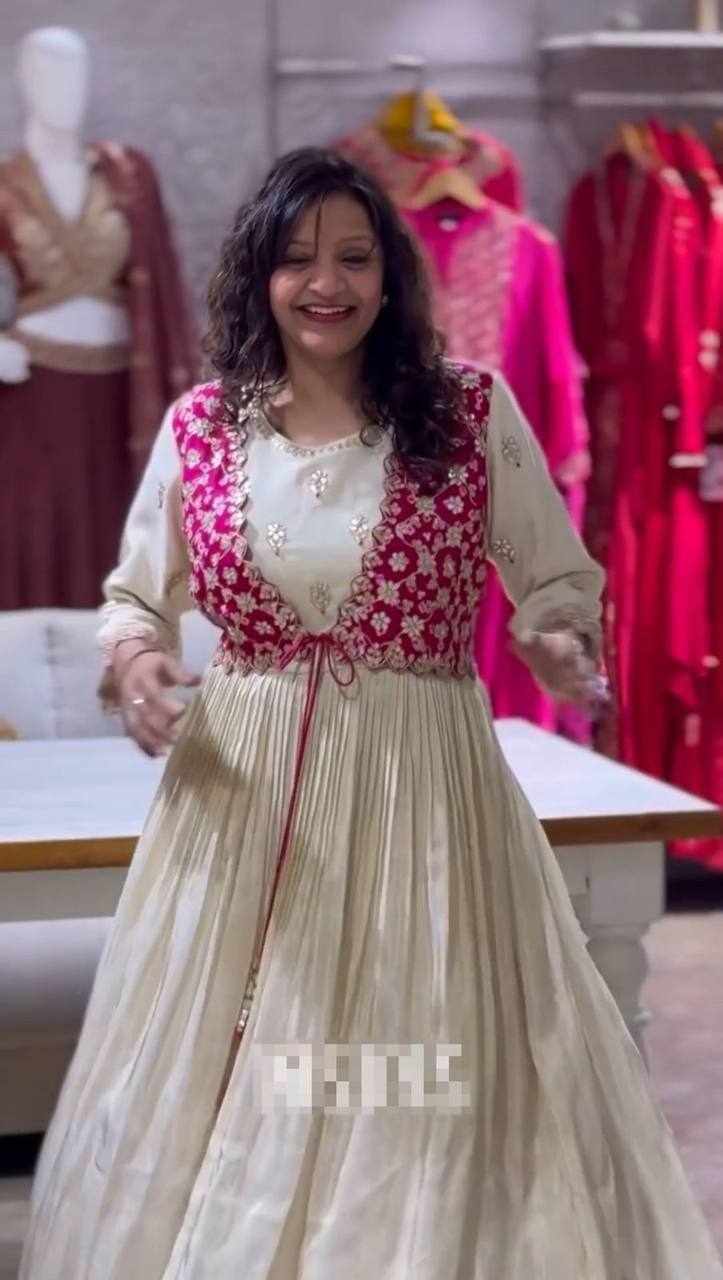 Home / Pc 464 Bandhej Gown With Attach Shrug