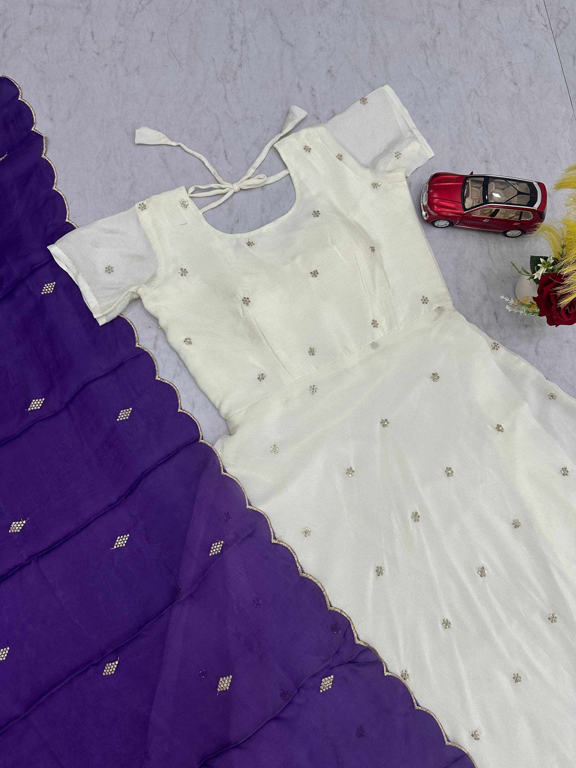 | Name : | PC 567 Casual Wear White Gown With Puple Dupatta |