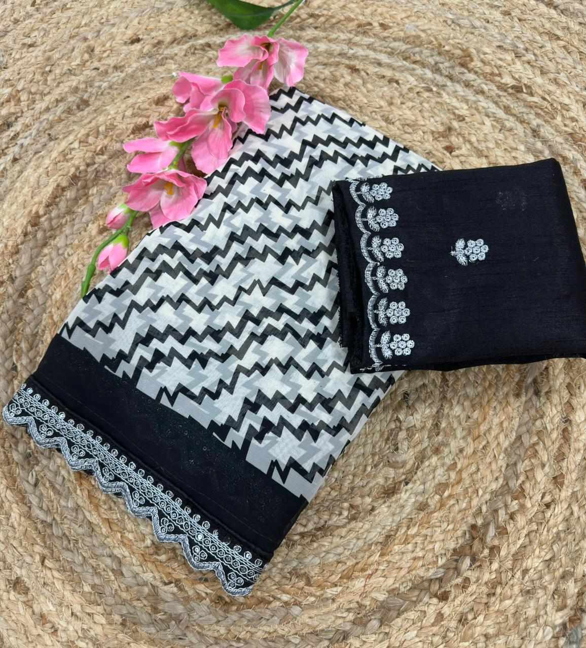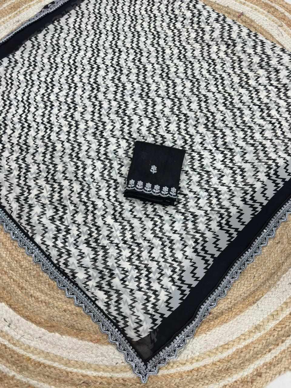 Crafted with graceful georgette and detailed coding embroidery lace work, this saree gives a rich and classy look. Perfect for festive occasions, parties, weddings, and special celebrations.