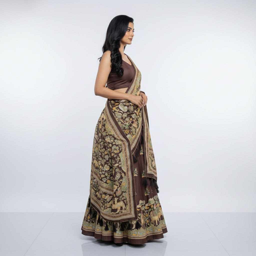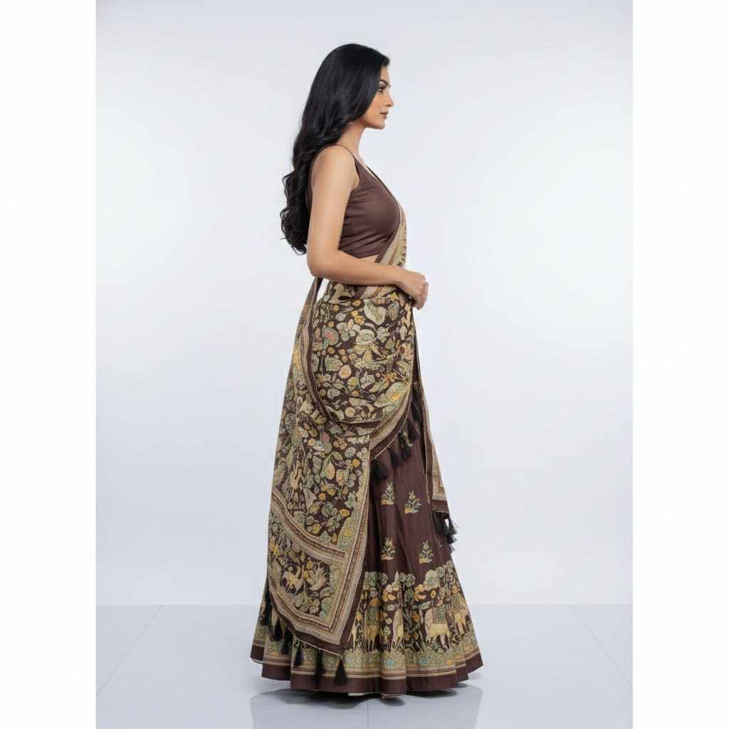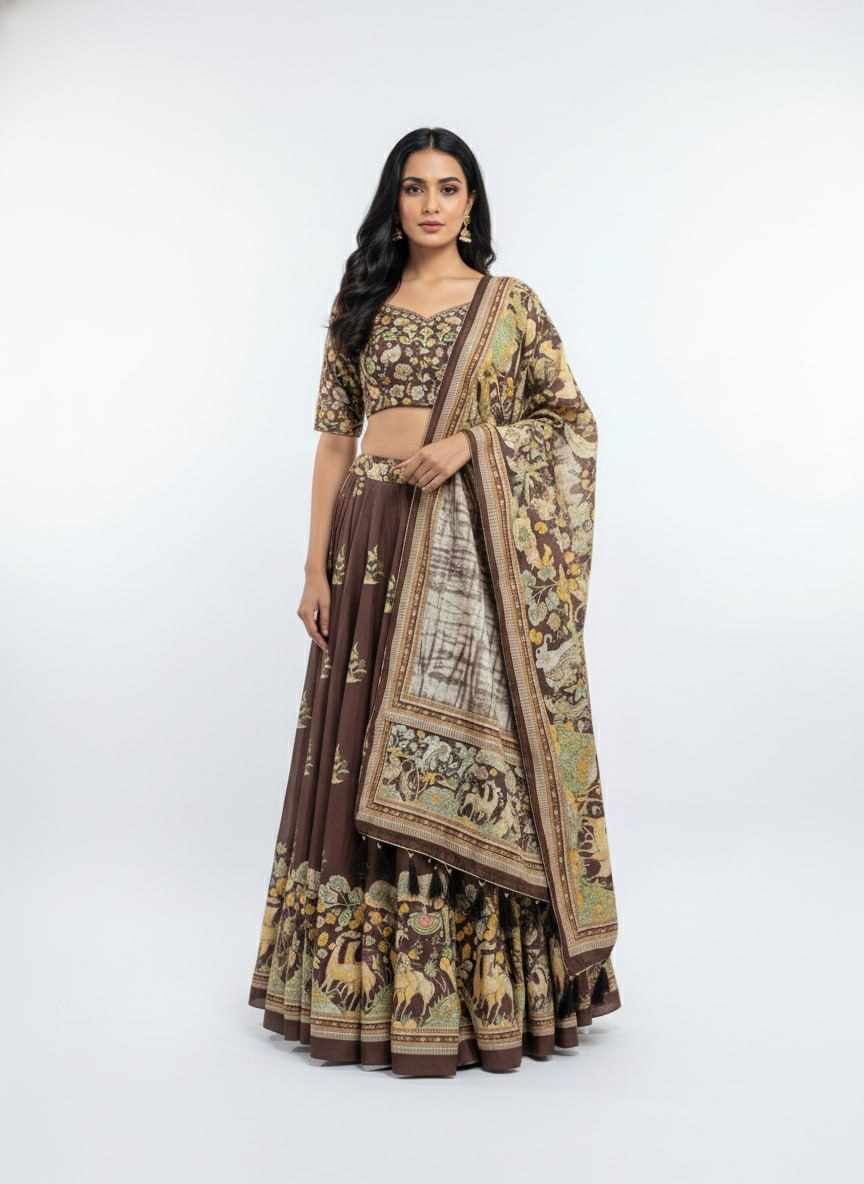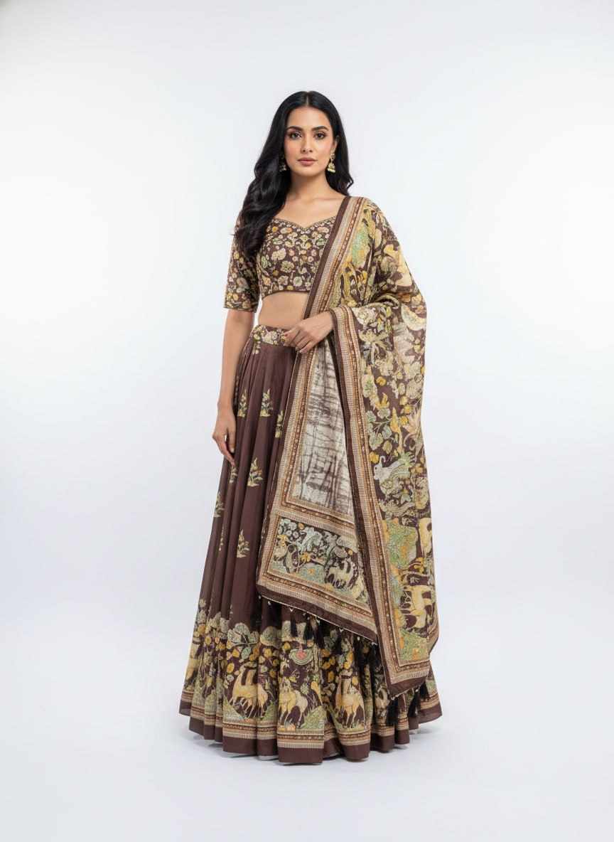| Name : | PIYU 23-2 Silk Digital Print Brown Lehnga |