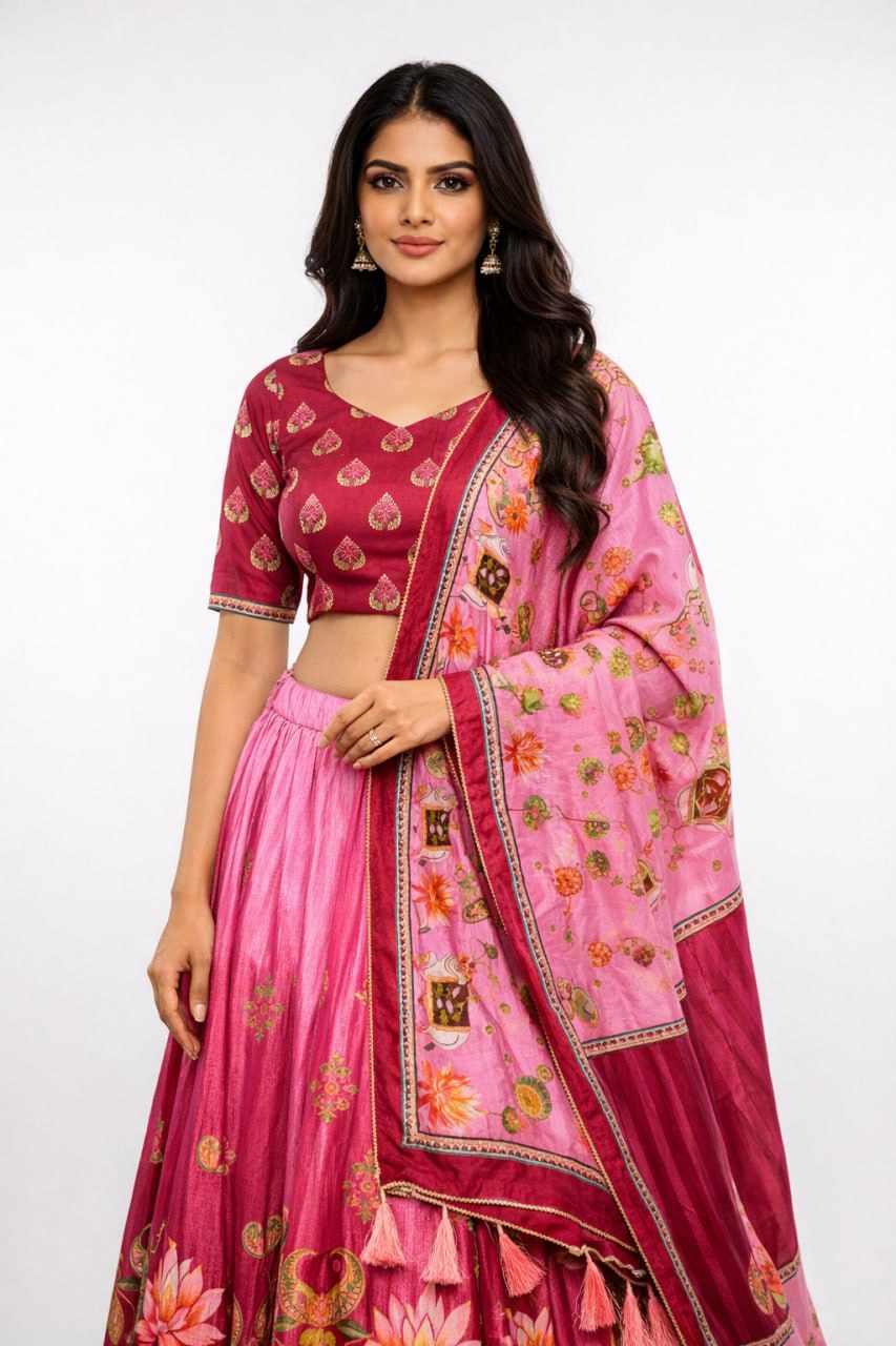 Designer Dola Silk Digital Print Lehenga Set