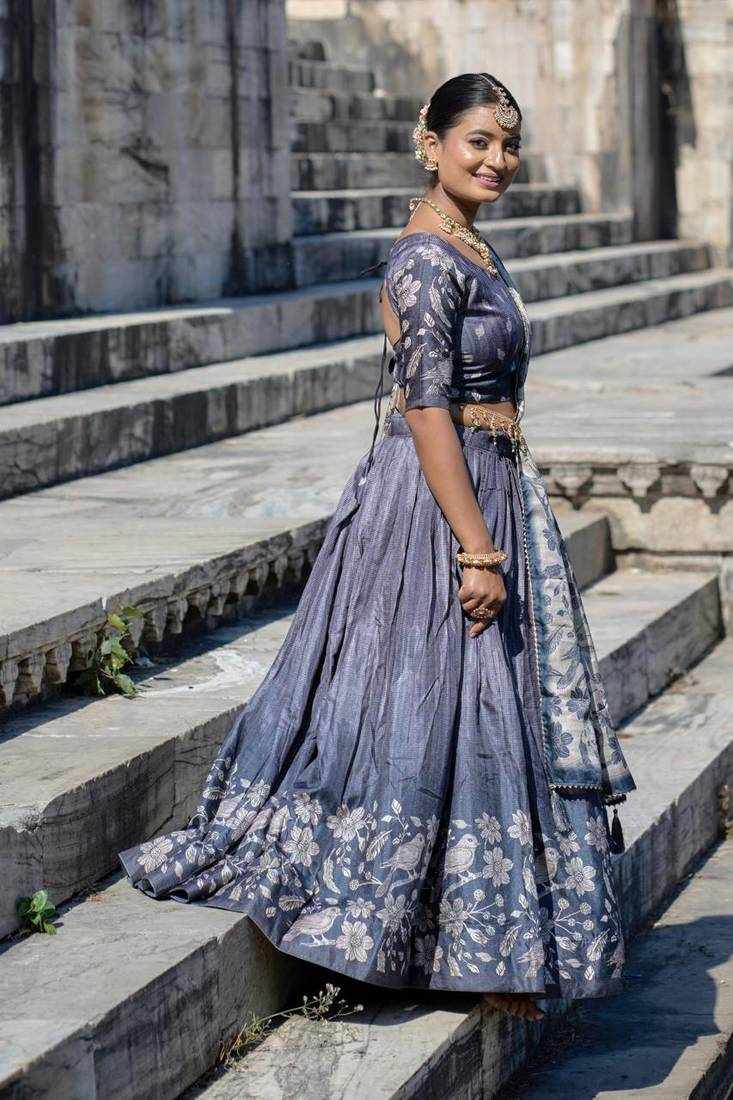 | Name : | PIYU 27-1 Silk Digital print Blue Lehnga |