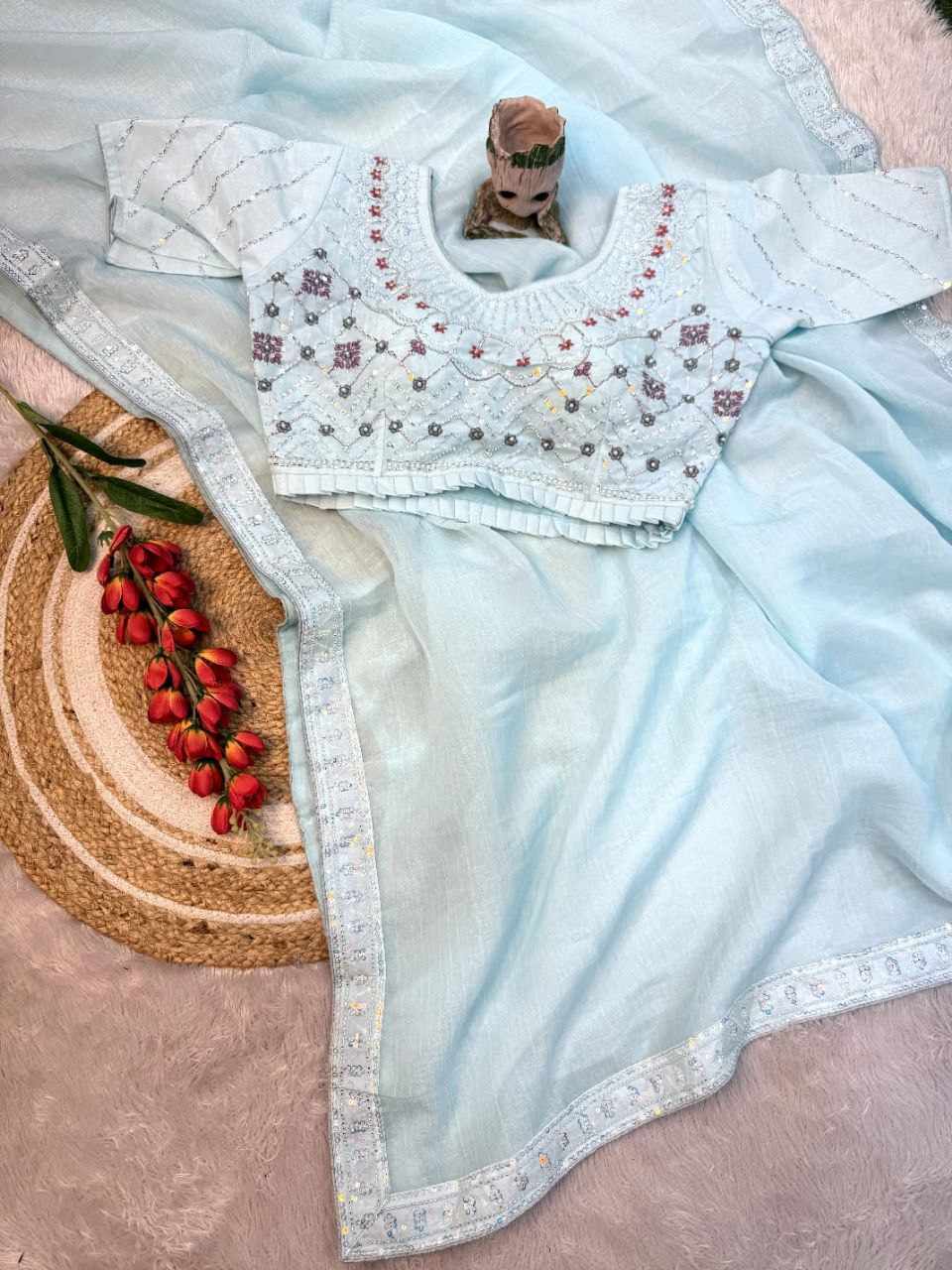 RC Party Wear Blue Crush Shining Saree With Beautiful Heavy Handwork