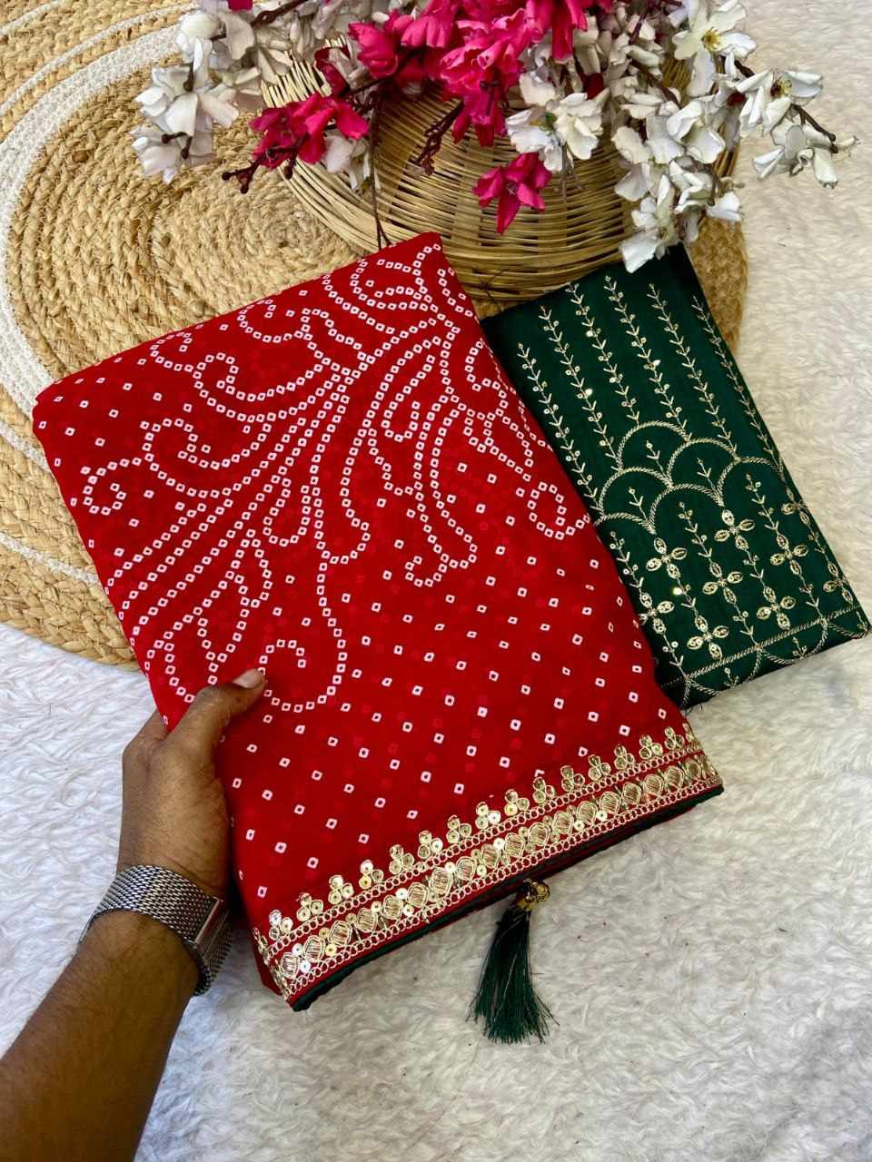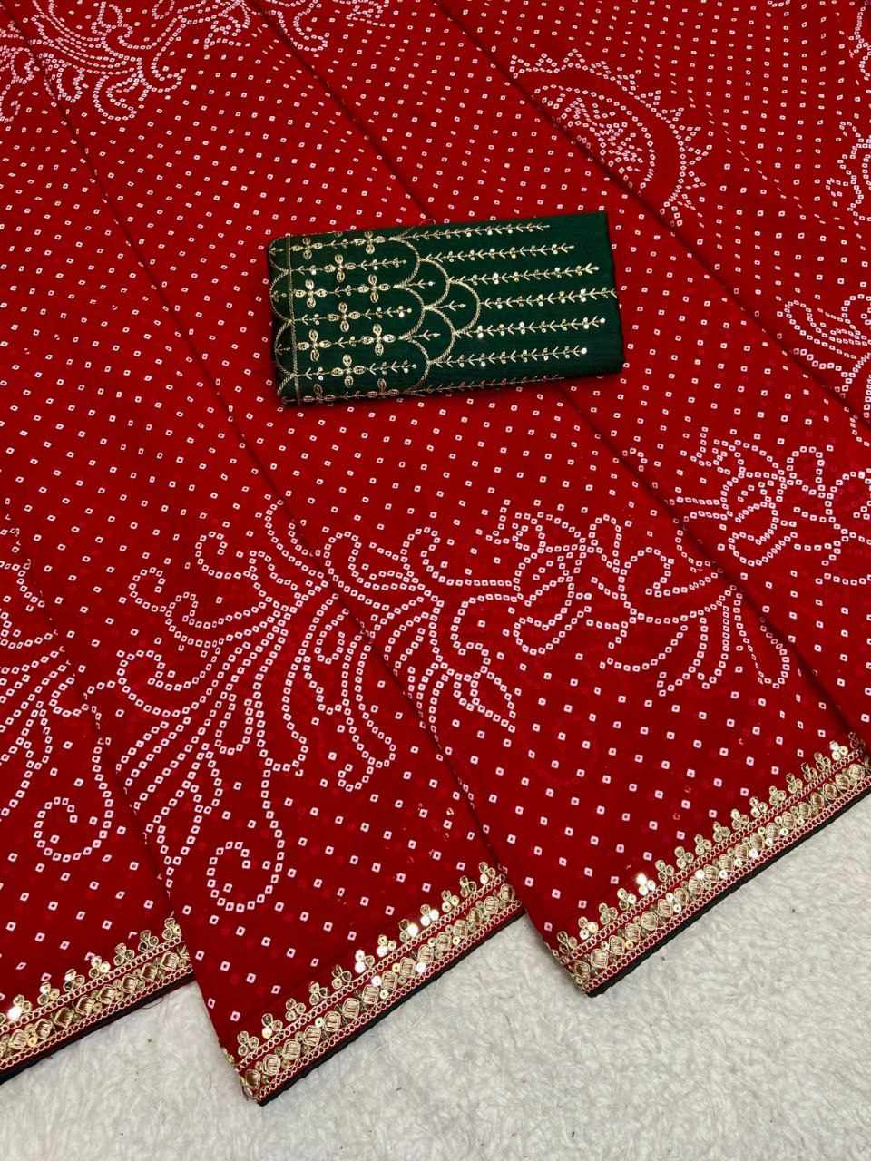 RC Red Bandhej Georgette heavy Coding Sequence border Saree