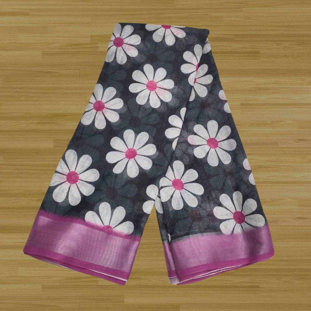 S4S Cotton Linen Black Flower Saree