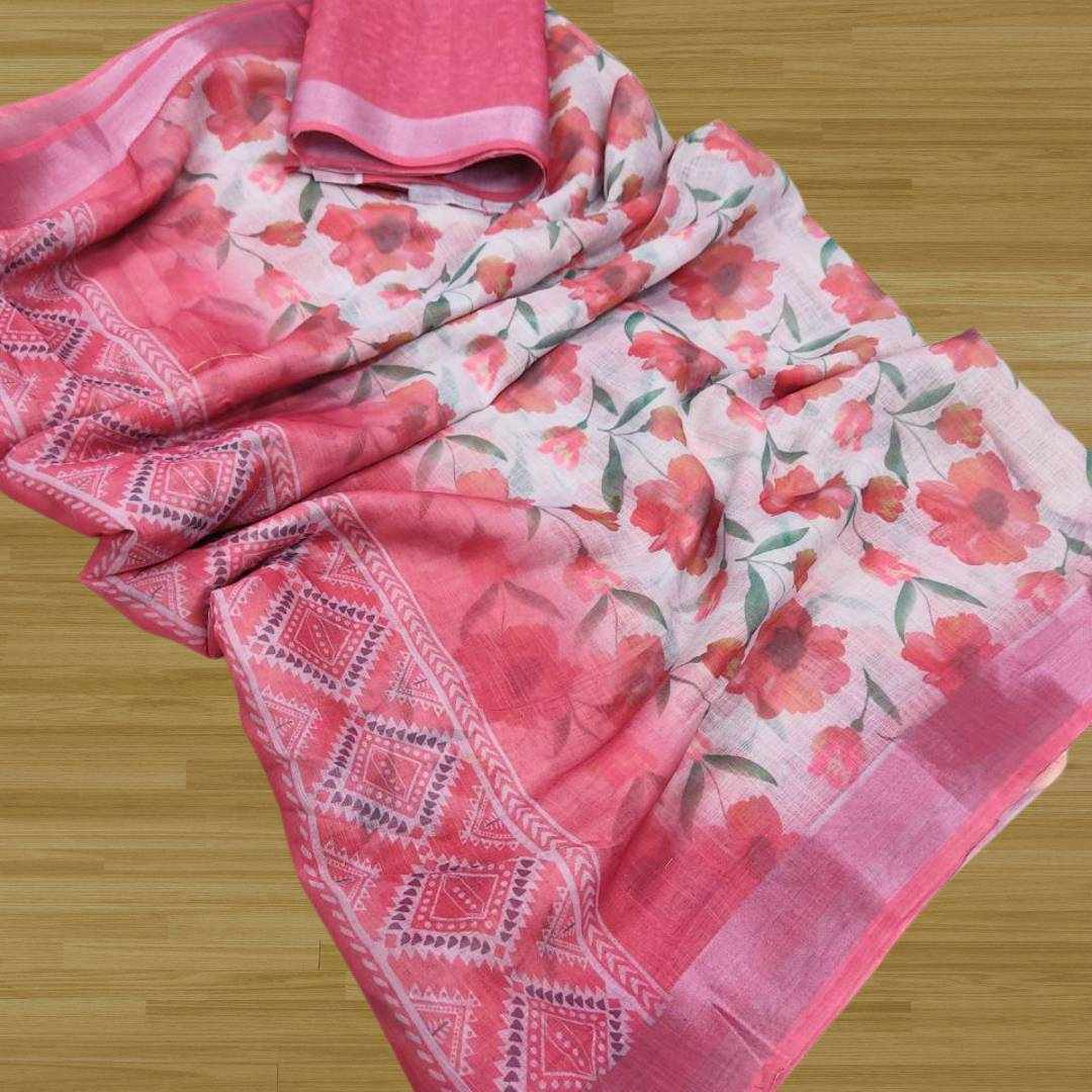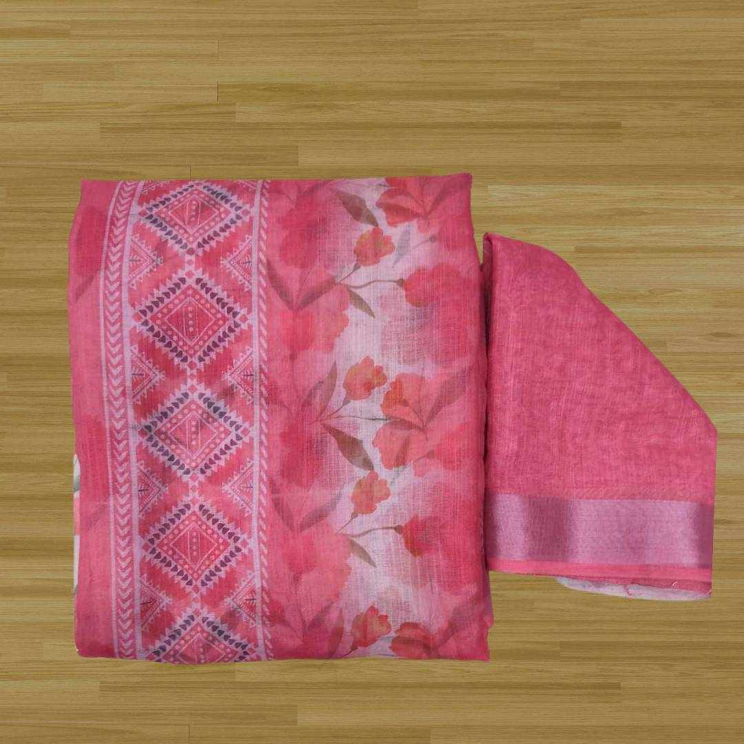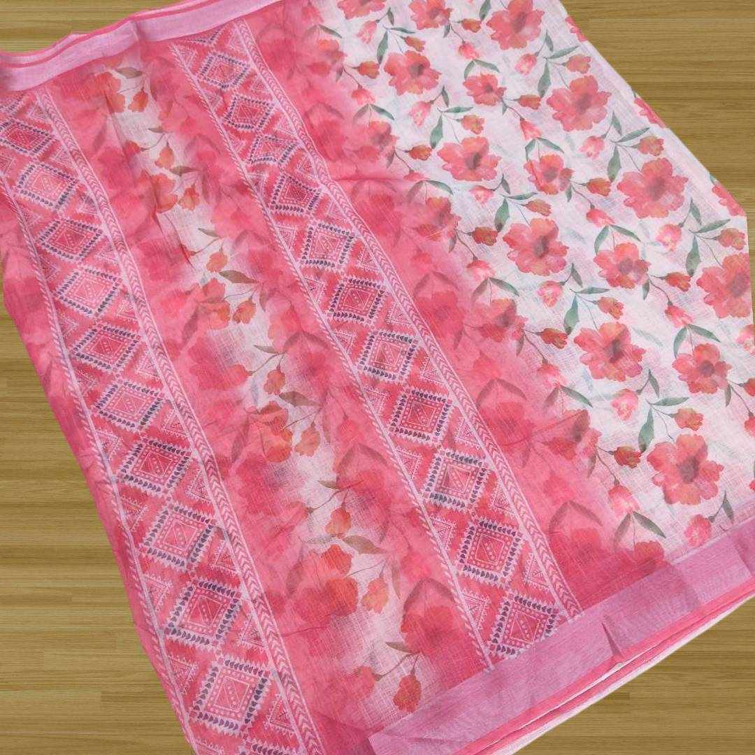 S4S Linen Baby Pink Flower Digital Print Cotton Saree