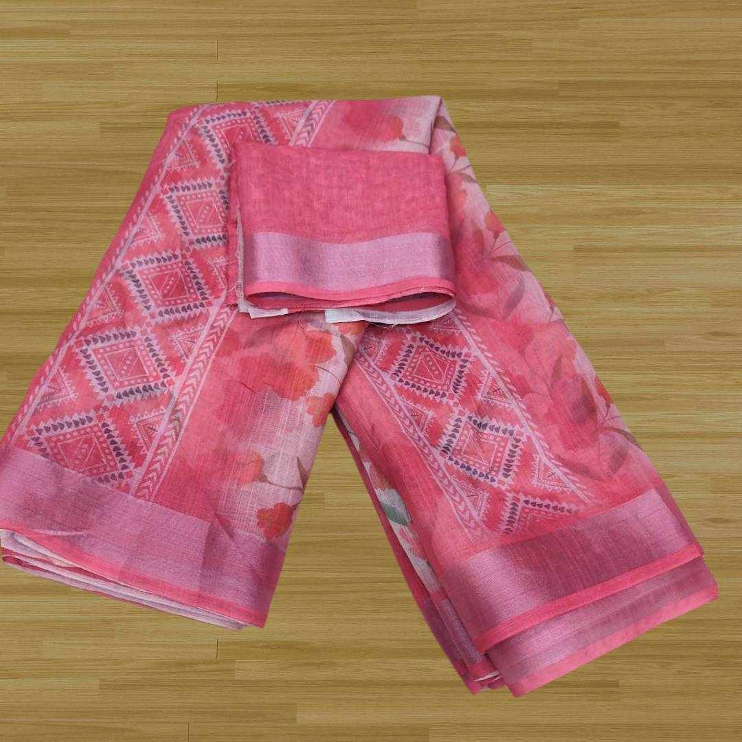 Home / S4S Linen Baby Pink Flower Digital Print Cotton Saree