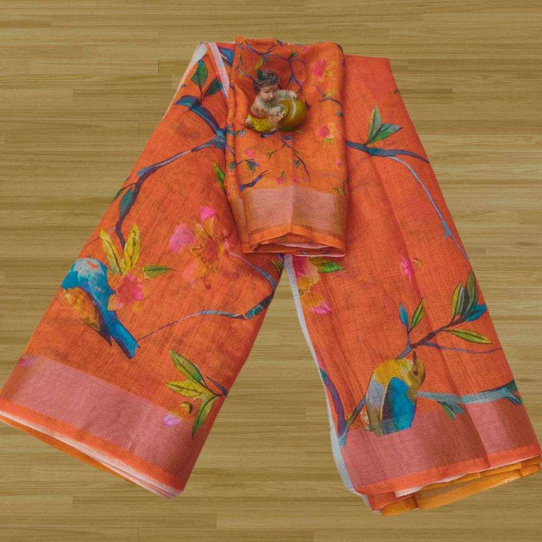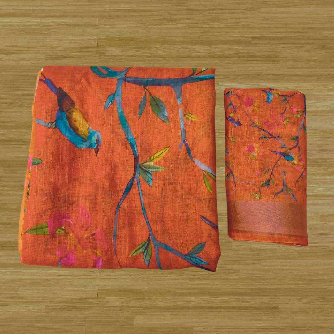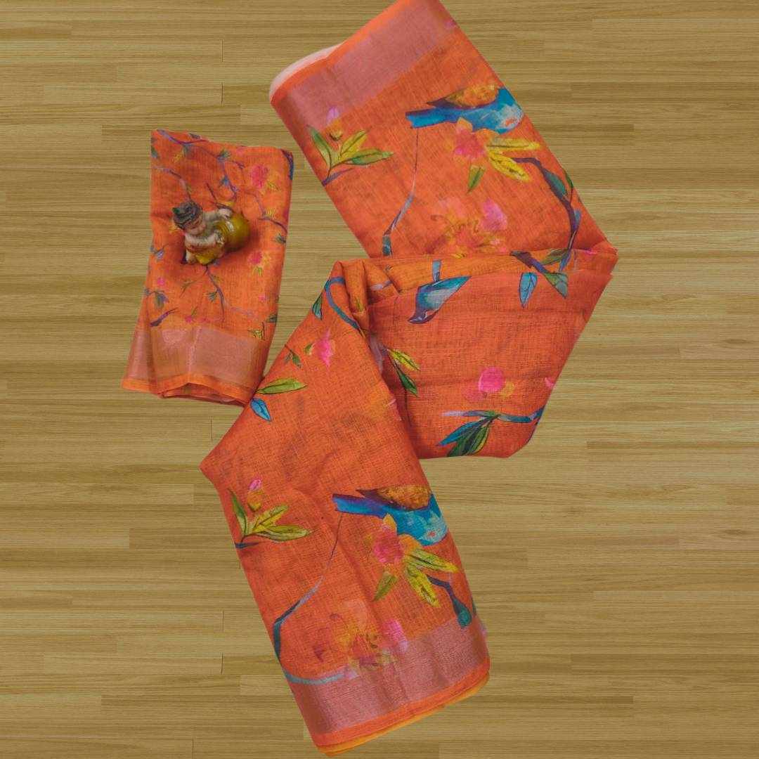 Home / S4S Linen Orange Bird Digital Print Cotton Saree
